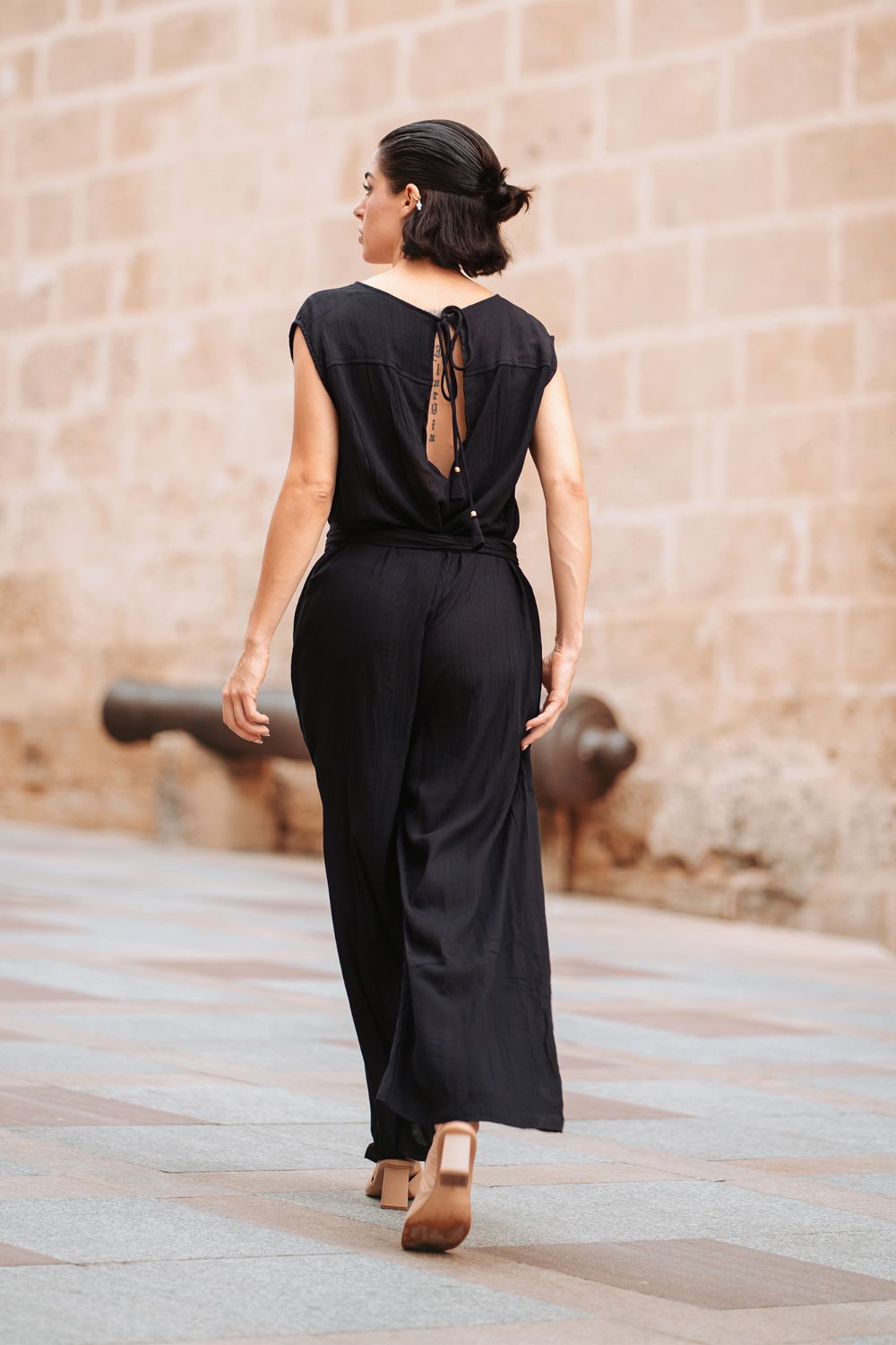 Jumpsuit Cổ V Cotton Cao Cấp Luna Llena, chất cotton silk mềm mượt cao cấp. Eo thun co giãn. Dài 140cm (40x140) Phù hợp đi biển, dạo phố, công sở, hoặc dự tiệc. Hướng dẫn