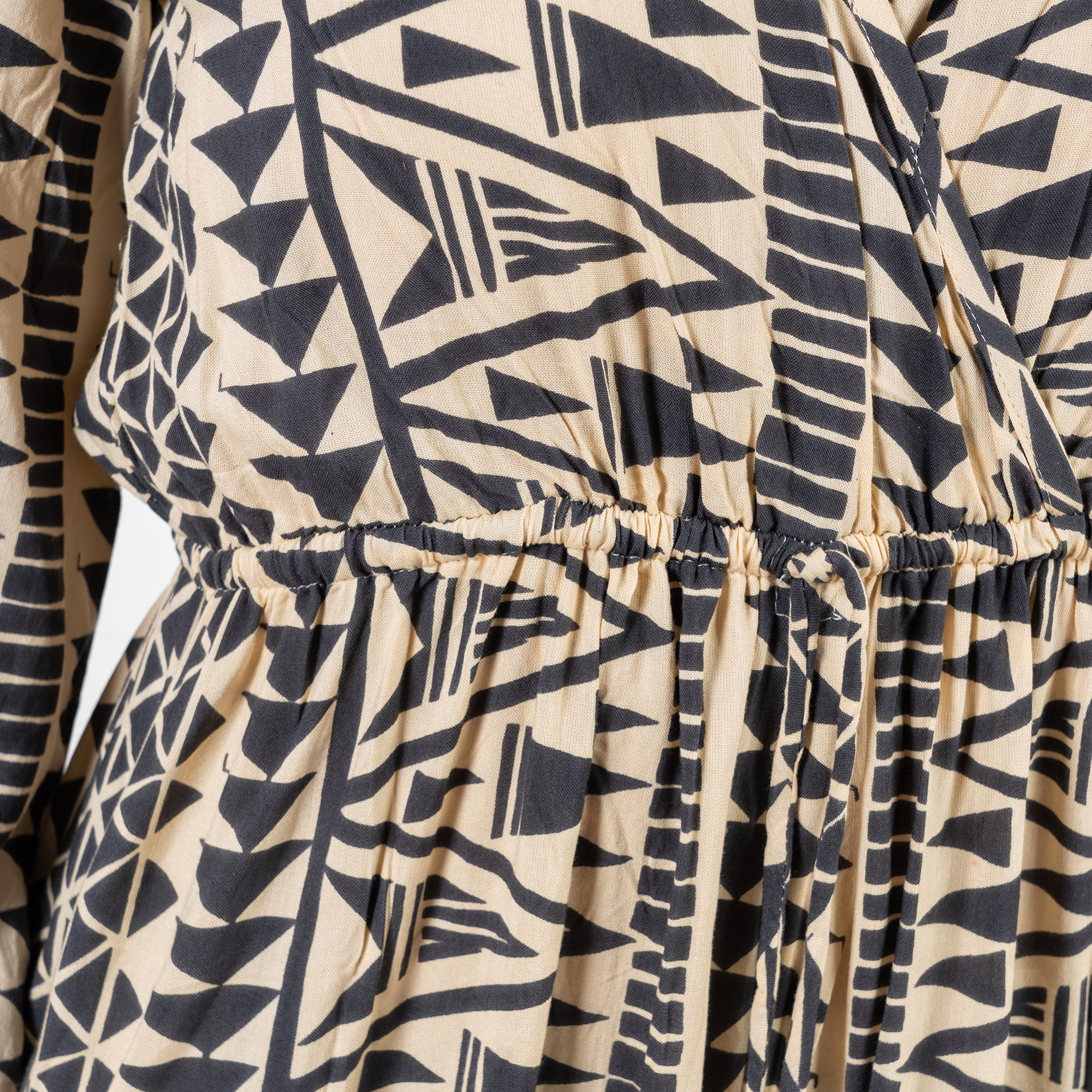 Jumpsuit Dài Tay Cotton, chất liệu cotton mềm mại. Họa tiết thổ cẩm độc đáo. Thun eo co giãn. Chân quần xẻ tà. Có túi 2 bên hông. Dài 135cm (45x135) Phù hợp đi biển,