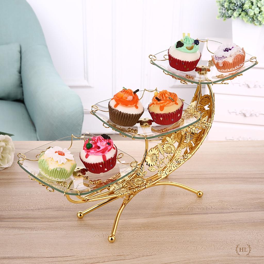 ✨KỆ ĐỂ BÁNH HOA QUẢ 3 TẦNG HÌNH THUYỀN HỢP KIM ĐĨA KÍNH CƯỜNG LỰC CAO CẤP CHO SỰ KIỆN