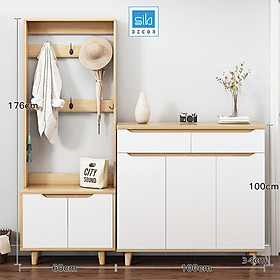 - Phía trên có kèm móc treo đồ có thể để quần áo, nón mũ,... Phù hợp đặt tại lối ra vào phòng khách, phòng ngủ,