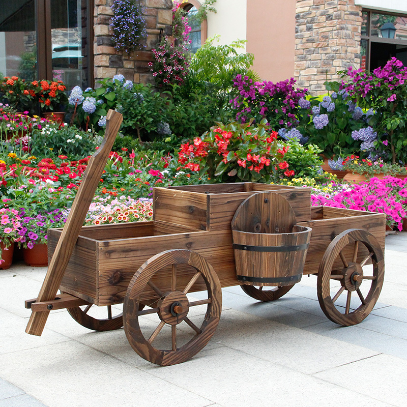 ✨Kệ gỗ để chậu hoa cây cảnh trang trí nhà cửa sân vườn có bánh xe di chuyển tiện lợi kiểu dáng vintage cổ điển màu sắc tự nhiên, thân thiện với môi trường