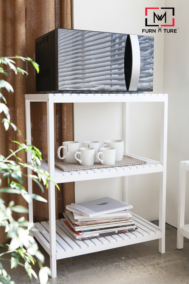 ✨KỆ GỖ ĐỂ LÒ VI SÓNG 3 TẦNG HÀN QUỐC MÀU TRẮNG - OVEN RACK 3F WHITE