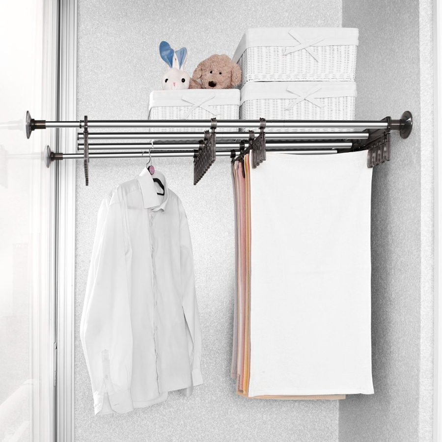 Cho việc sử dụng đa chức năng như kệ, giàn phơi và mắc treo Thanh phơi không gỉ thiết kế thời trang Sử dụng tối ưu lượng không gian còn lại trong nhà Lắp đặt