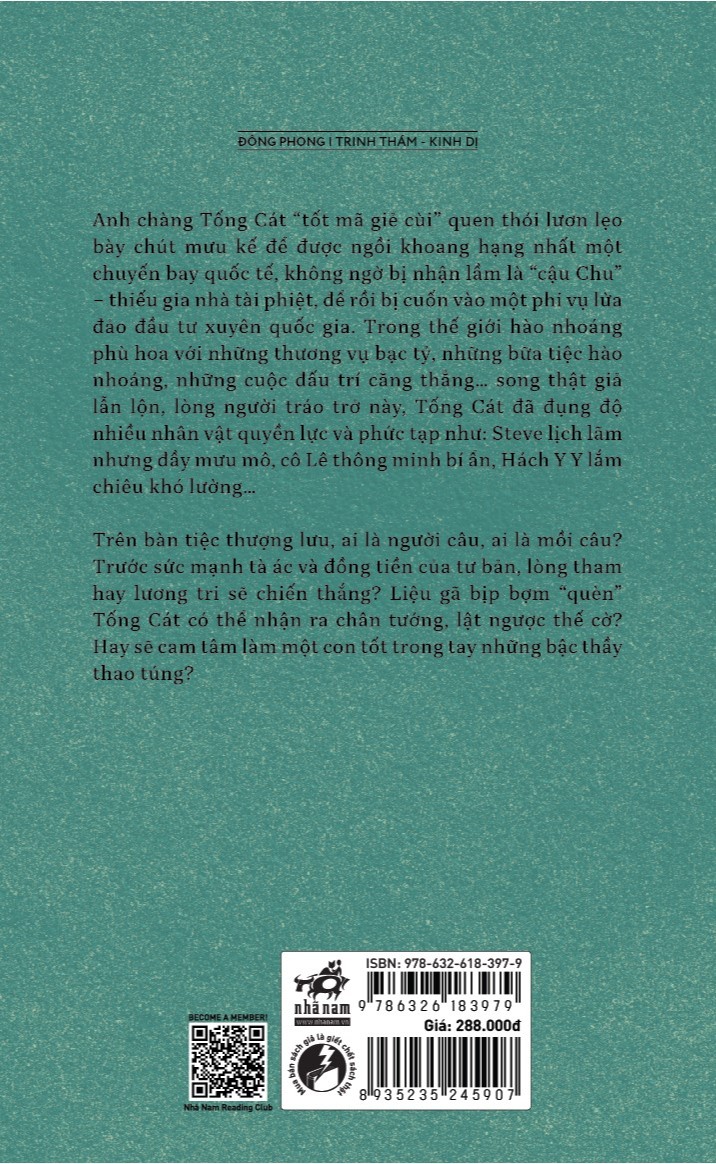 Anh chàng Tống Cát “tốt mã giẻ cùi” quen thói luôn lẹo bày chút mưu kế để được ngồi khoang hạng nhất một chuyến bay quốc tế, không ngờ bị nhầm lẫn là “cậu Chu” – thiếu gia nhà tài phiệt, để rồi bị cuốn vào một phi vụ lừa đảo đầu tư xuyên quốc gia. Trong thế giới hào nhoáng phù hoa với những thương vụ bạc tỷ, những bữa tiệc hào nhoáng, những cuộc đấu trí căng thẳng… song thật giả lẫn lộn, lòng người tráo trở này, Tống Cát đã đụng độ nhiều nhân vật quyền lực và phức tạp như: Steve lịch lãm nhưng đầy mưu mô, cô Lê thông minh bí ẩn, Hách Y Y lắm chiêu khó lường… Trên bàn tiệc thượng lưu, ai là người câu, ai là mồi câu? Trước sức mạnh tà ác và đồng tiền của tư bản, lòng tham hay lương tri sẽ chiến thắng? Liệu gã bịp bợm “quèn” Tống Cát có thể nhận ra chân tướng, lật ngược thế cờ? Hay sẽ cam tâm làm một con tốt trong tay những bậc thầy thao túng?