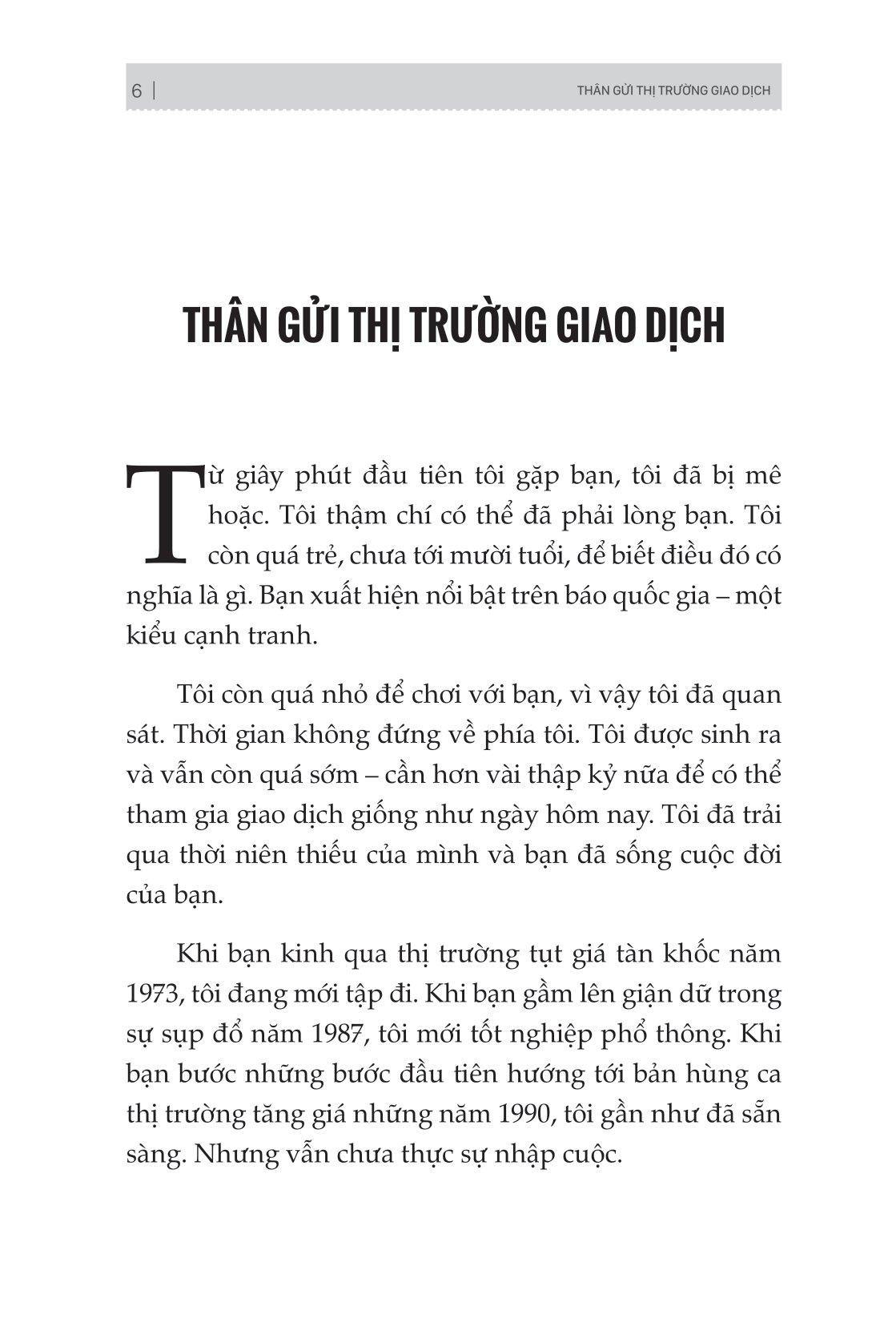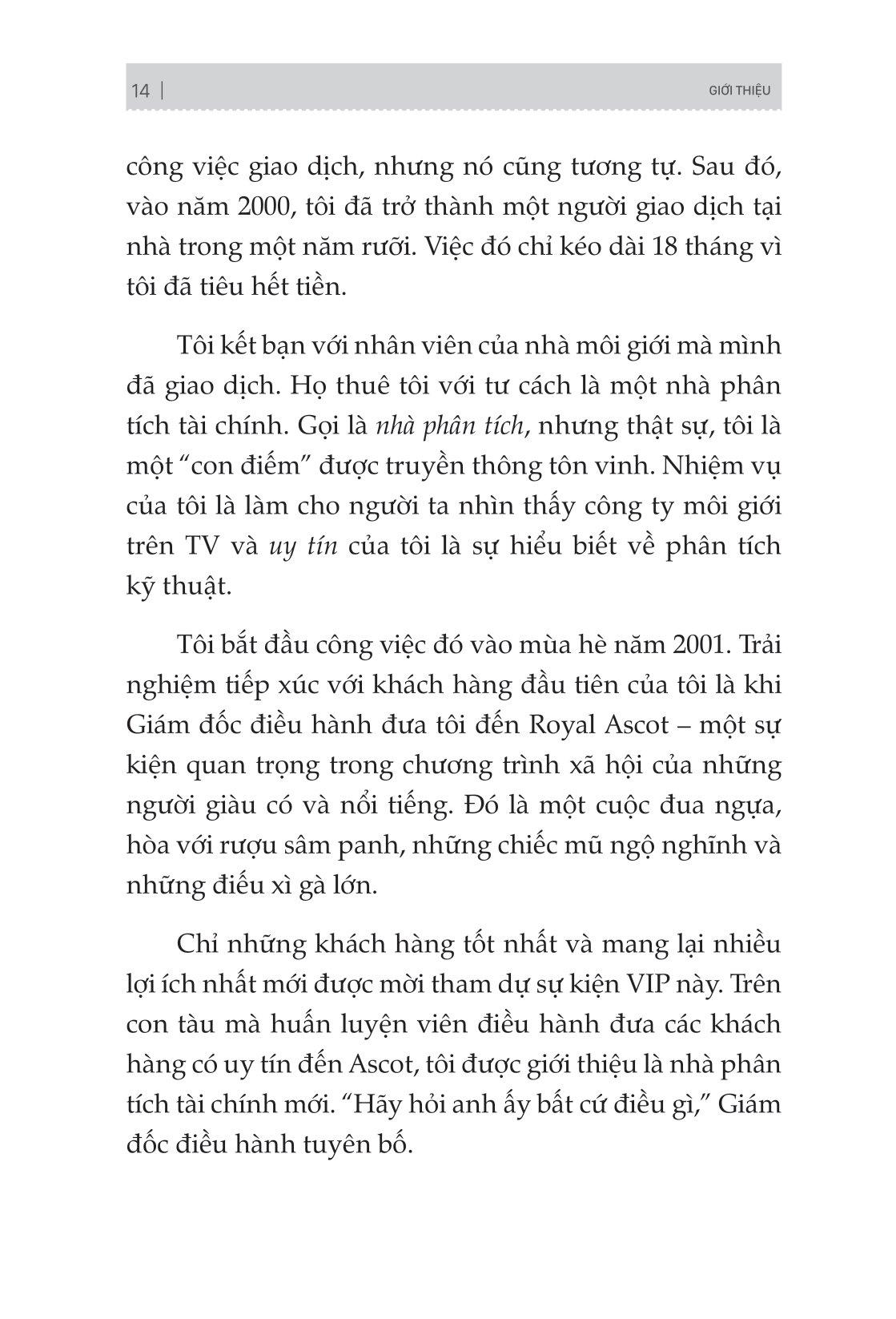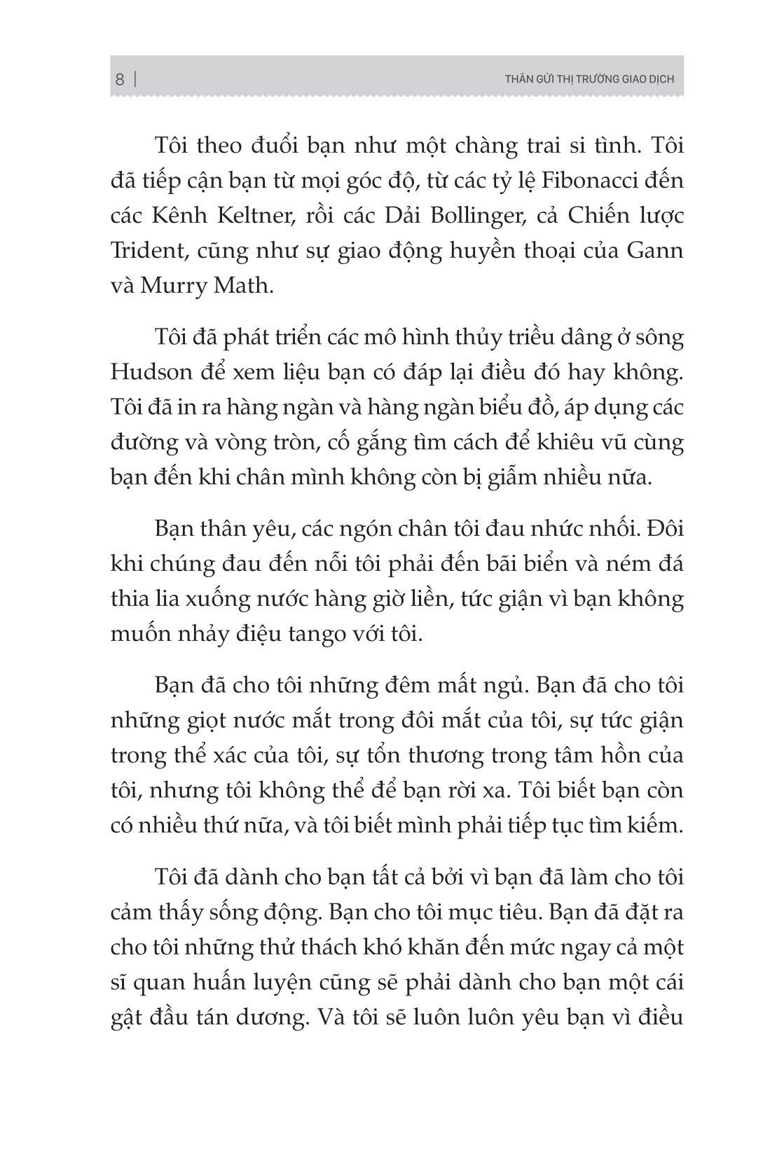 Cuốn sách mô tả cách chơi giao dịch, sự chuyển đổi để trở thành một nhà giao dịch nhất quán sẽ len lỏi vào cả các bình diện khác trong cuộc sống của bạn. Nó sẽ giúp bạn hiểu sâu về con người m.ình và những gì bạn có thể làm để cải thiện bản thân. Đích đến cuối cùng không chỉ là những con số tăng dần trên tài khoản giao dịch của bạn mà còn là một hành trình cuộc sống hài hoà, thú vị.