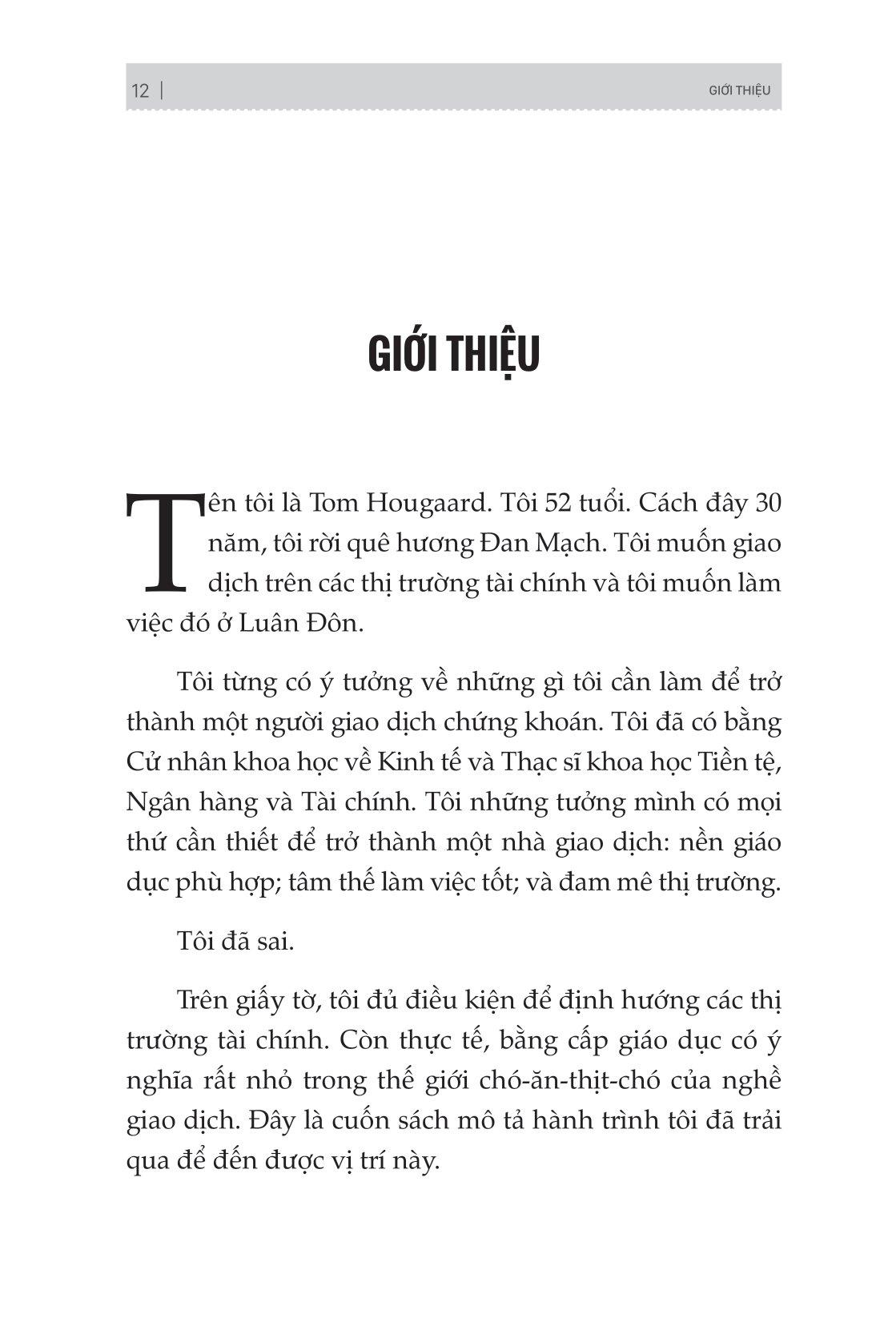Những nhà đầu tư mới không biết rằng trên thị trường chứng khoán luôn tồn tại những nghịch lý khác xa cuộc sống. Chính những nghịch lý này sẽ khiến giới đầu tư dễ dàng thua lỗ, nếu không đủ kinh nghiệm cần thiết. Mặc dù đã có kinh nghiệm giao dịch tài khoản của chính m.ình trong 11 năm, thế nhưng Tom Hougaard vẫn không thể tránh khỏi trải nghiệm thua lỗ vốn là một phần hiển nhiên trong trading. Và bằng tất cả kinh nghiệm xương má được rút ra từ chính bản thân, ông đã đúc kết lại và viết lên cuốn sách “Kẻ thua cuộc giỏi nhất sẽ giành chiến thắng - Đừng để vài thất bại trên sàn chứng khoán khiến bạn chùn bước” được chia sẻ thông qua những nội dung:
