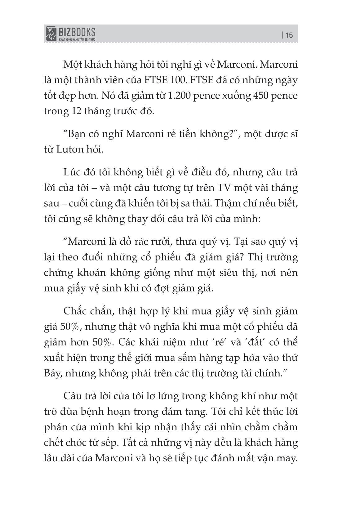 Chứng khoán là một nghề cực kỳ khó khăn, một nghề nằm ngoài khả năng trí tuệ rõ ràng của hầu hết mọi người, nhưng đồng thời cũng là một nghề sẽ mang lại giàu có ngoài sức tưởng tượng, một khi ta hiểu rõ luật chơi. Vì sao ông trở thành người giao dịch giỏi, vì ông giỏi thua cuộc. Mối quan hệ của bạn với nỗi sợ hãi và nghịch cảnh sẽ quyết định cuộc sống của bạn ở mức độ rất cao. Và đó là lý do vì sao ông thắng, ông thắng vì ông giỏi thua cuộc. Trong giao dịch, không giống như cuộc sống, kẻ thua cuộc giỏi nhất sẽ là người chiến thắng. Một nhà giao dịch có thể phát triển và thịnh vượng với tỷ lệ thành công đó - miễn là họ đã chuẩn bị sẵn sàng cho điều đó.