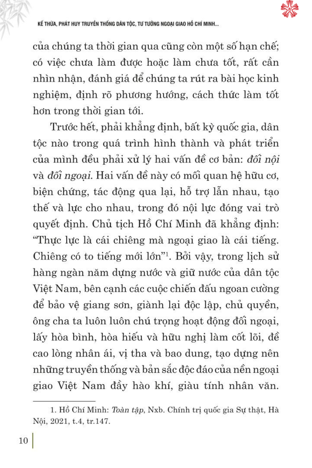 ✨Kế thừa, phát huy truyền thống dân tộc, tư tưởng ngoại giao Hồ Chí Minh, quyết tâm xây dựng và phát triển nền đối ngoại, ngoại giao toàn diện, hiện đại, mang đậm bản sắc "cây tre Việt Nam'' (bản in 2024)