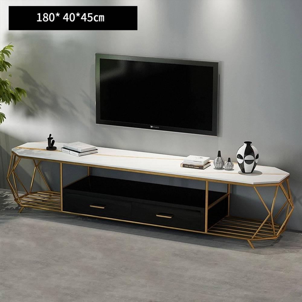 Kệ Tivi Gavino trắng được làm từ chất liệu chính là sắt dày 1.2 ly sơn tĩnh điện bền đẹp, màu sắc đa dạng. Mặt kệ có thể thay đổi chất liệu như gỗ, đá nhân tạo hoặc đá tự nhiên. Hộc kéo gỗ MDF sơn PU chống thấm, chống trầy, tùy chọn các màu trắng, màu đen tương ứng màu mặt kệ. Chiều sâu và chiều cao tiêu chuẩn lần lượt là 40cm và 45cm, với các tùy chọn từ 1m4 đến 2m. Ngoài kích thước có sẵn, Quý khách có thể đặt theo nhu cầu.