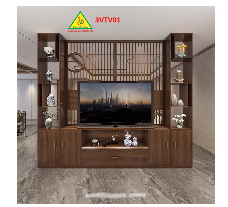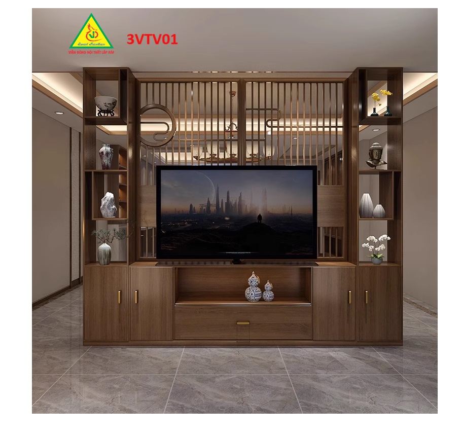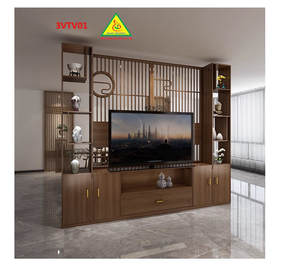 Đây là loại kệ tivi kiêm vách ngăn phòng khách và  nhà bếp được dùng vừa với chức năng để tivi trang trí phòng khách, vừa được dùng với chức năng là vách ngăn cách giữa phòng khách và nhà bếp.