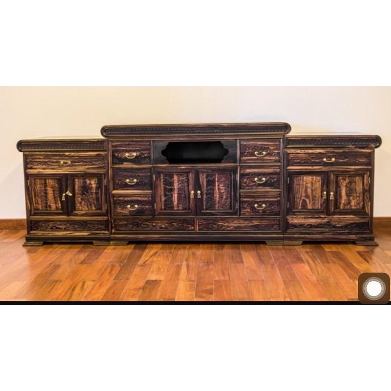 KỆ TIVI gỗ MUN mẫu 3 cục ĐỒNG TIỀN LÕM GIỮA DÀI 2M57 hàng ĐỤC TAY chọn màu ĐEN | ĐỒ GỖ LINH LONG