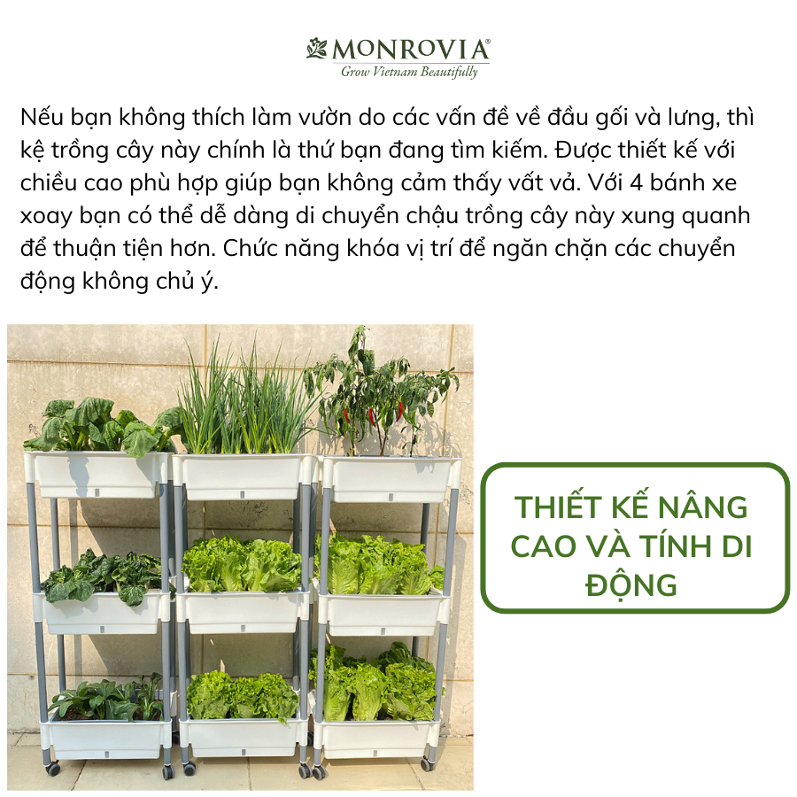 ✨Kệ trồng rau tự tưới D202 MONROVIA cho rau, hoa, có bánh xe di chuyển thuận lợi