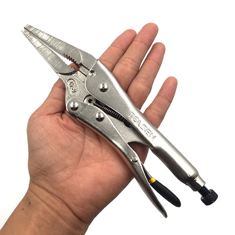 Đầu kìm thiết kế đặc biệt với độ mở lớn. Cơ chế kẹp và khóa để người sử dụng rảnh tay không mất nhiều sức lực. Lò xo cứng cáp và co giãn nhẹ nhàng, giúp giữ đúng hàm kẹp tại vị trí cần kẹp mà không làm biến dạng như các chi tiết.
