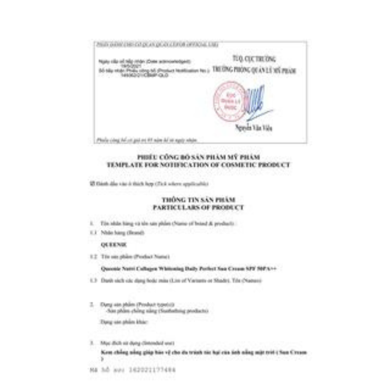 Kem chống nắng Queenie - Nutri Collagen Whitening Daily Perfect Sun Cream SPF 50 PA++ , 50ml