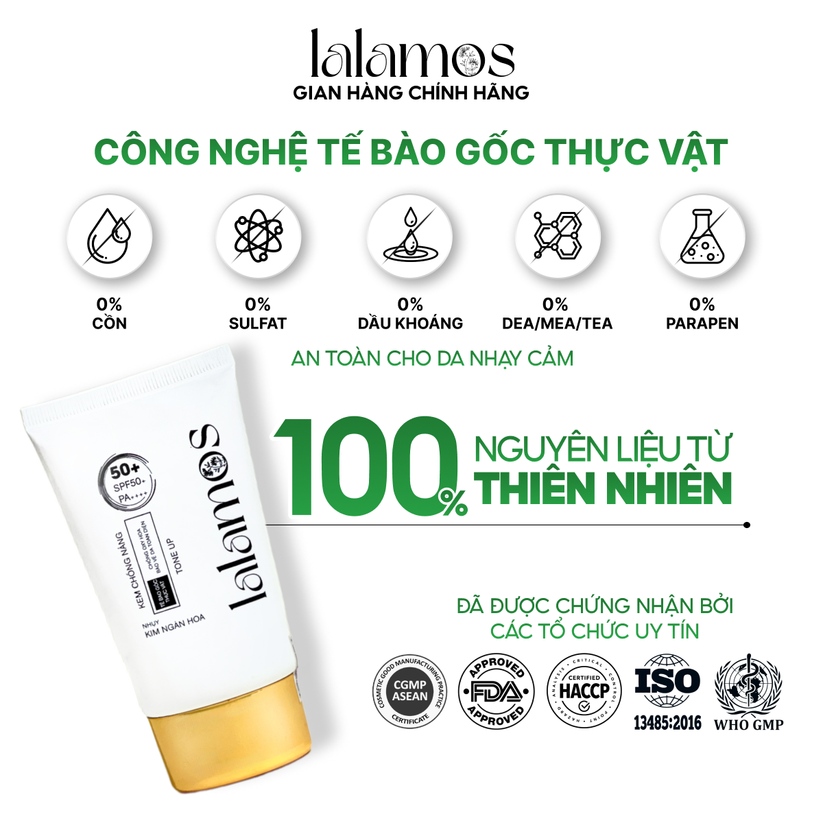 Kem Chống Nắng LALAMOS Nhụy Kim Ngân Hoa Nâng Tone SPF 50+ PA++++ 50ml