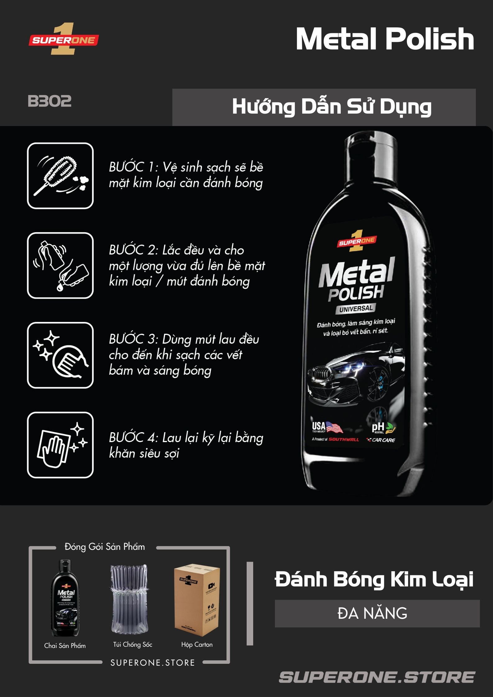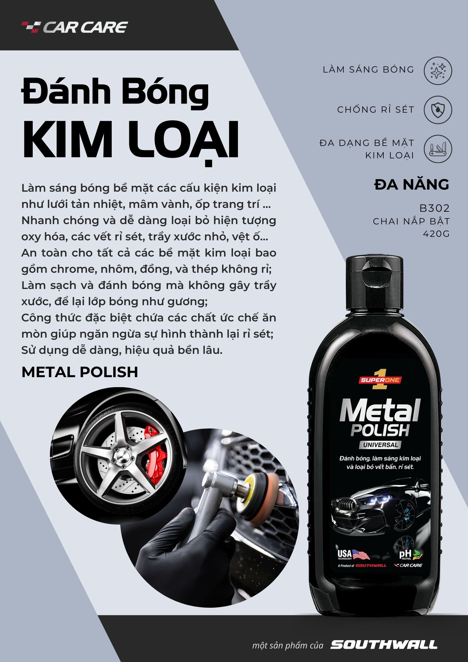 LÀM SẠCH, SÁNG BÓNG, CHỐNG RỈ SÉT KIM LOẠI Kem Đánh Bóng Kim Loại Super One Metal Polish là một sản phẩm không thể thiếu trong việc chăm sóc ô tô của bạn. Với khả