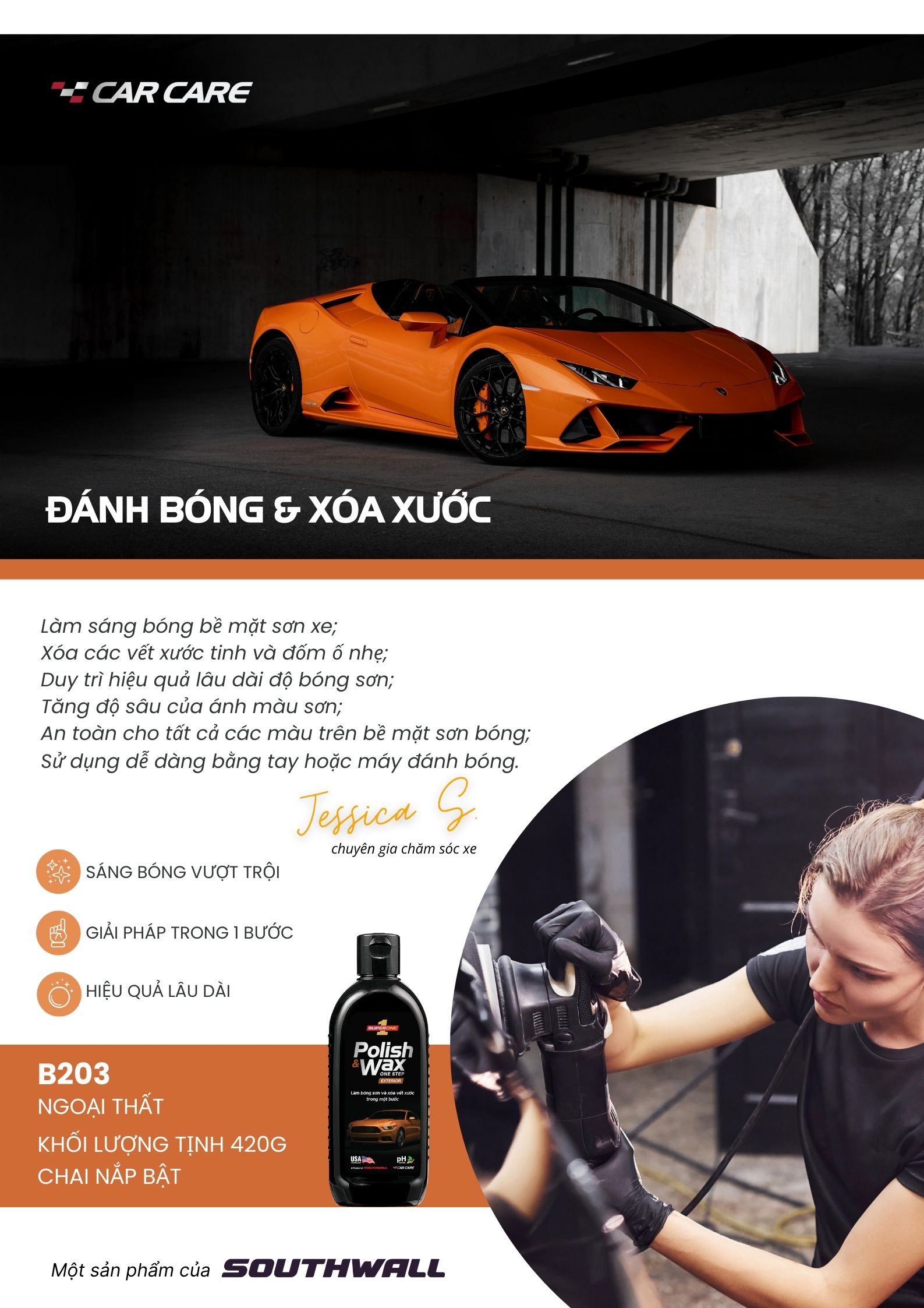 • Đặc Tính: Sáng Bóng Vượt Trội – Giải Pháp Trong Một Bước – Hiệu Quả Lâu Dài