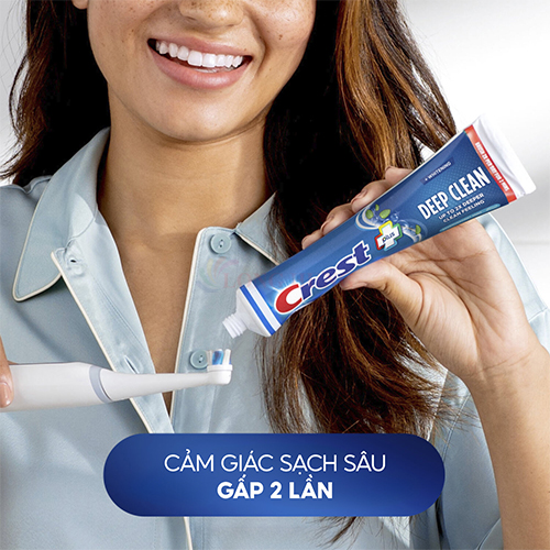 - Chứa fluoride giúp ngăn ngừa sâu răng, hương bạc hà Scope tươi mát, các chất làm sạch nhẹ nhàng loại bỏ mảng bám và bảo vệ men răng. Crest Plus - Deep Clean Effervescent Mint: