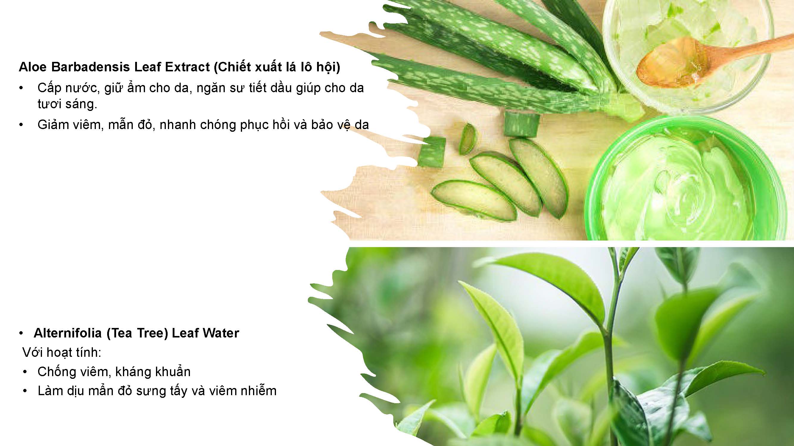 Kết cấu dạng gel thấm nhanh, phù hợp với da dầu, da hỗn hợp. Thành phần và công dụng Thành phần thiên nhiên chiết xuất lá trà xanh, hoa anh đào, rễ cây Potentilla