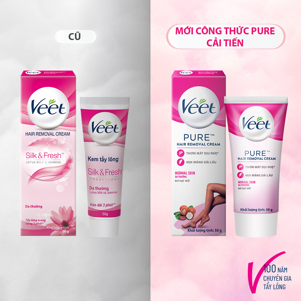 VEET là nhãn hiệu kem tẩy lông bán chạy hàng đầu thế giới. Kem tẩy lông VEET Mới với công nghệ Pure cải tiến về hiệu quả dưỡng ẩm và mùi hương. Với chiết xuất
