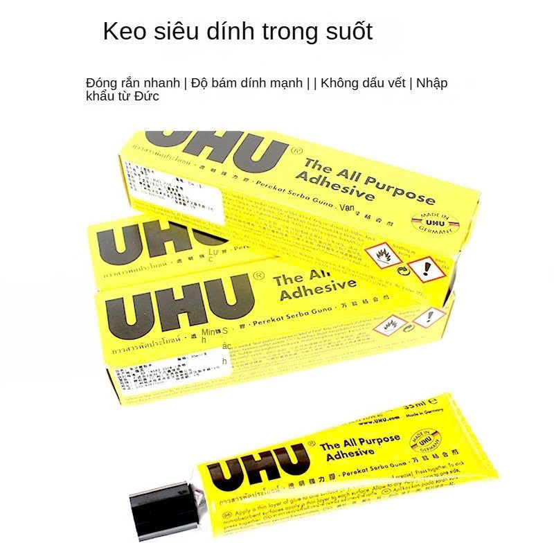 Mua tại TiktokĐặc điểm: trong suốt, độ bám dính cao, bền, nhanh khô, không nhỏ giọt, dễ sử dụng, thân thiện với môi trường nên sản phẩm keo UHU được sử dụng trong rất nhiều lĩnh vực...