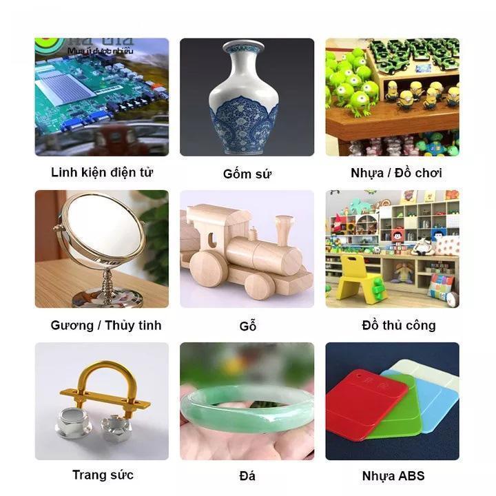 Gắn kết đa dạng chất liệu: gốm sứ, kim loại, nhựa, dép xốp, đồ gỗ, gương, trang sức, đồ thủ công,linh kiện điện tử...
