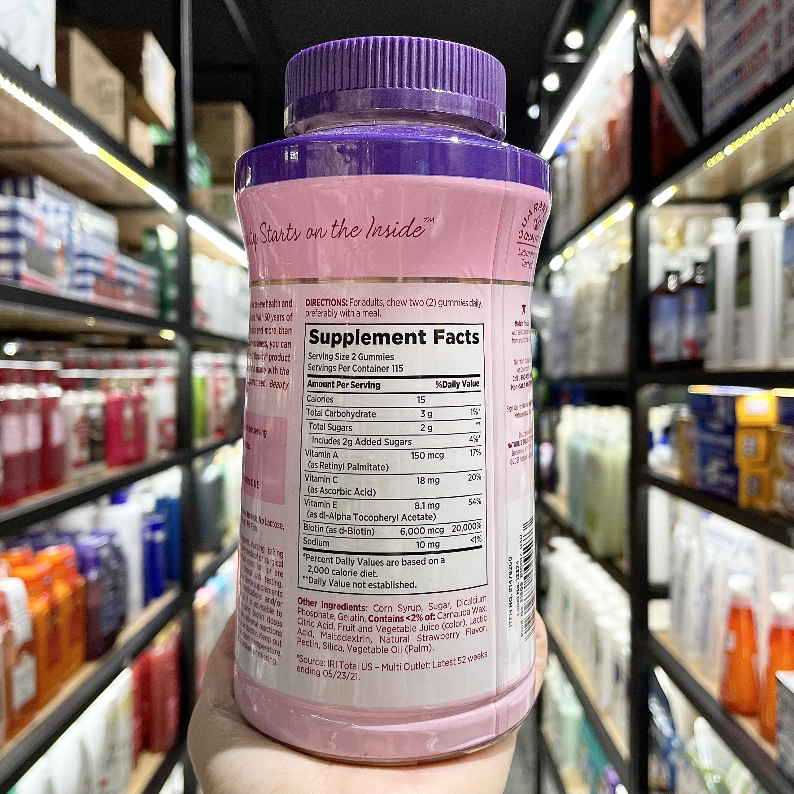 Biotin : Công thức bao gồm 2,500 mcg biotin mỗi viên. Biotin là một loại vitamin tan trong nước và là một thành viên trong gia đình vitamin B. Các vitamin hoàn tan trong nước sẽ không tích tụ trong cơ thể, vì vậy chúng có thể được tiêu thụ mỗi ngày. Biotin giúp hỗ trợ làn da, tóc và móng khỏe mạnh nên bạn có thể thấy và cảm giác cơ thể mình ở trạng thái tốt nhất.