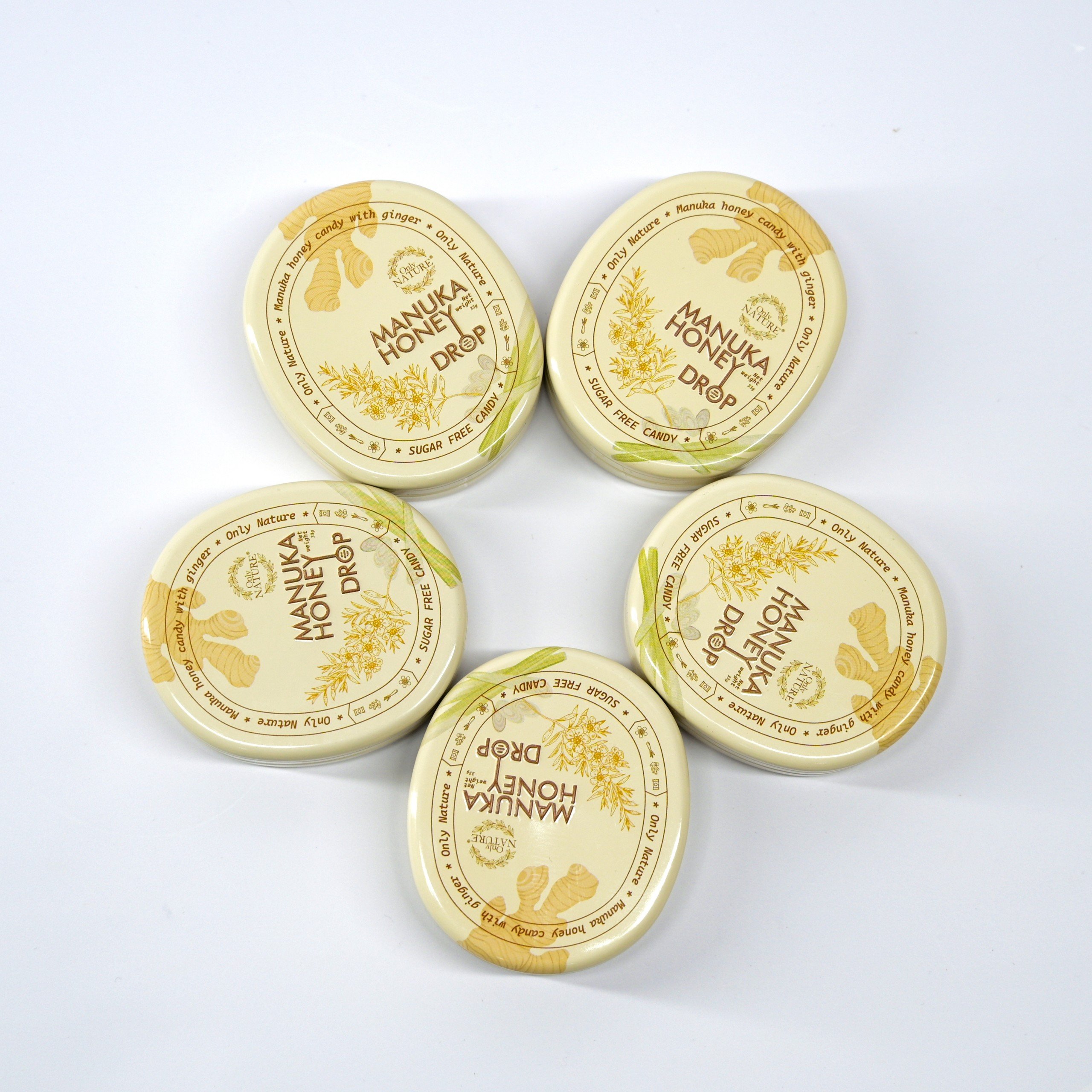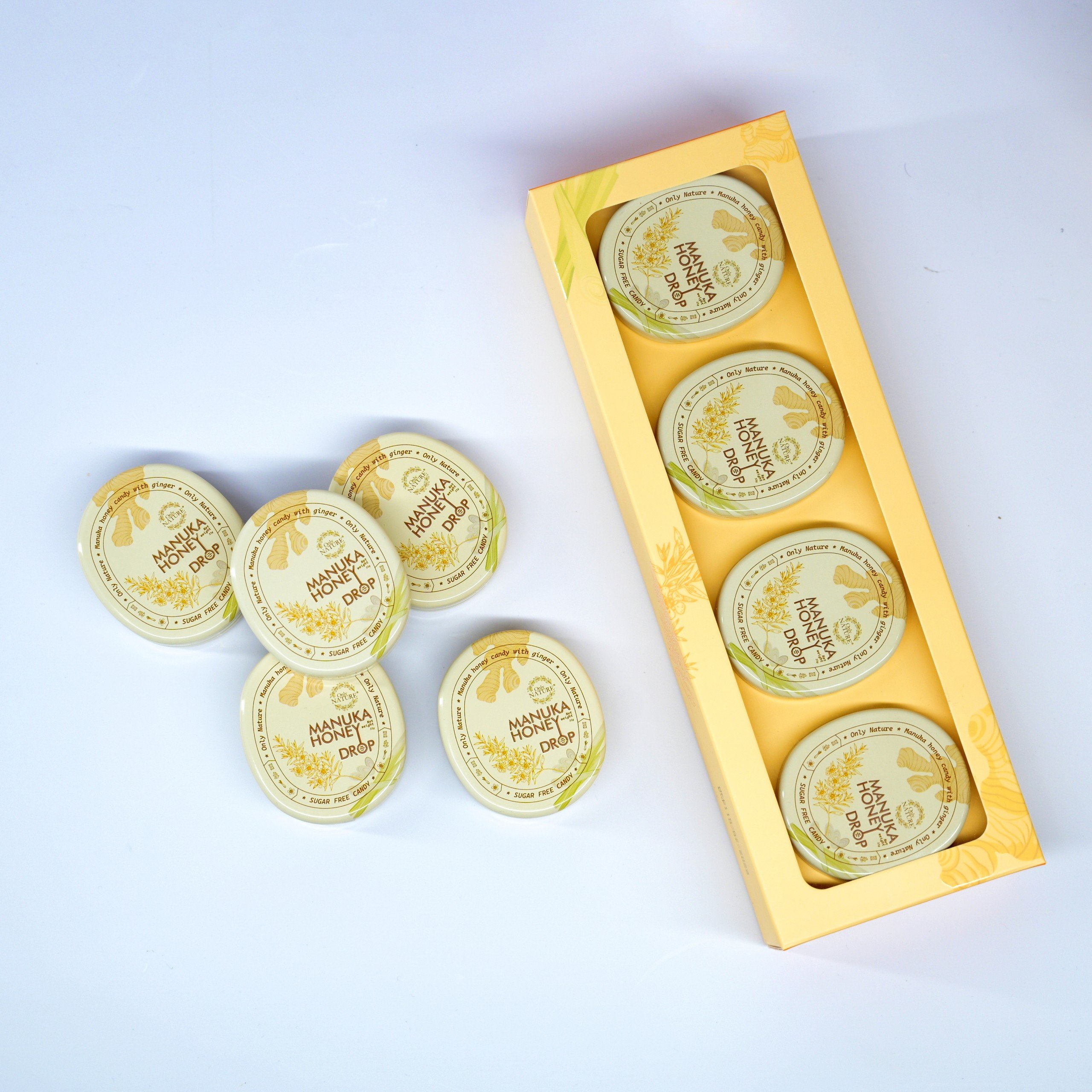 KẸO GỪNG SẢ MẬT ONG MANUKA ONLY NATURE MANUKA HONEY DROP - SUGAR FREE là sự kết hợp độc đáo từ tinh chất gừng, sả, đường isomalt* và , với hương vị cay nồng ban đầu từ tinh