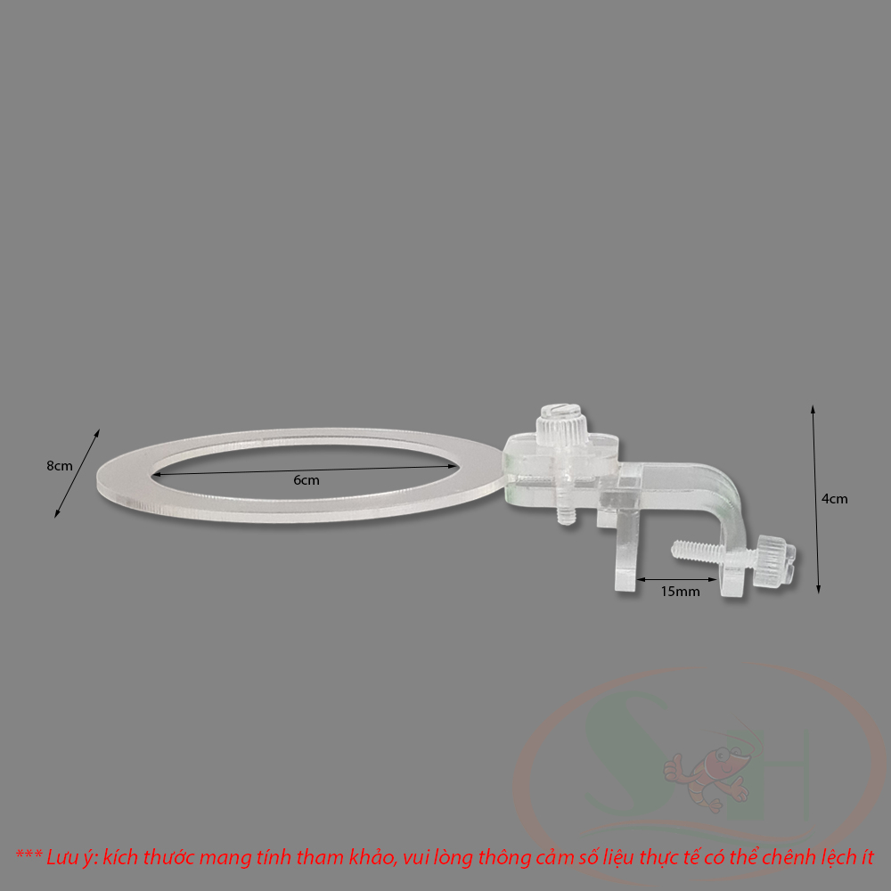- Kẹp mica giữ cốc trồng cây thủy canh bao gồm sẵn chân, vòng và ốc siết (không bao gồm cốc nhựa).