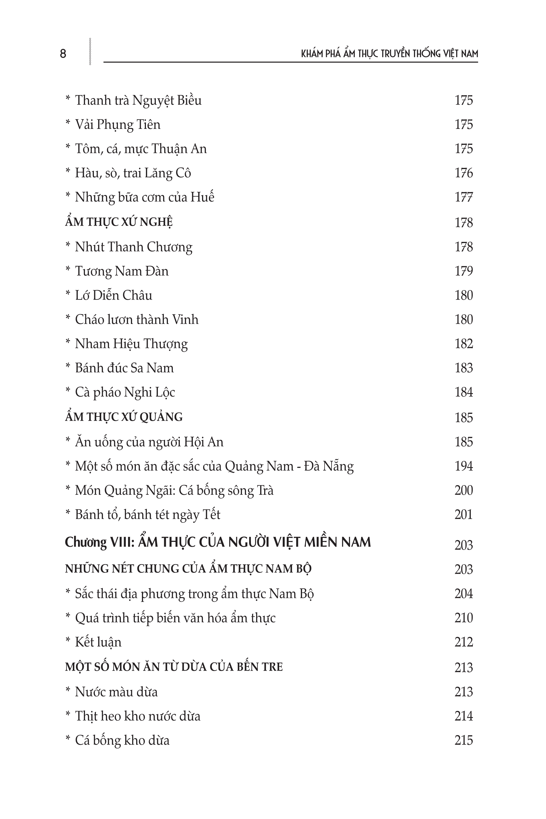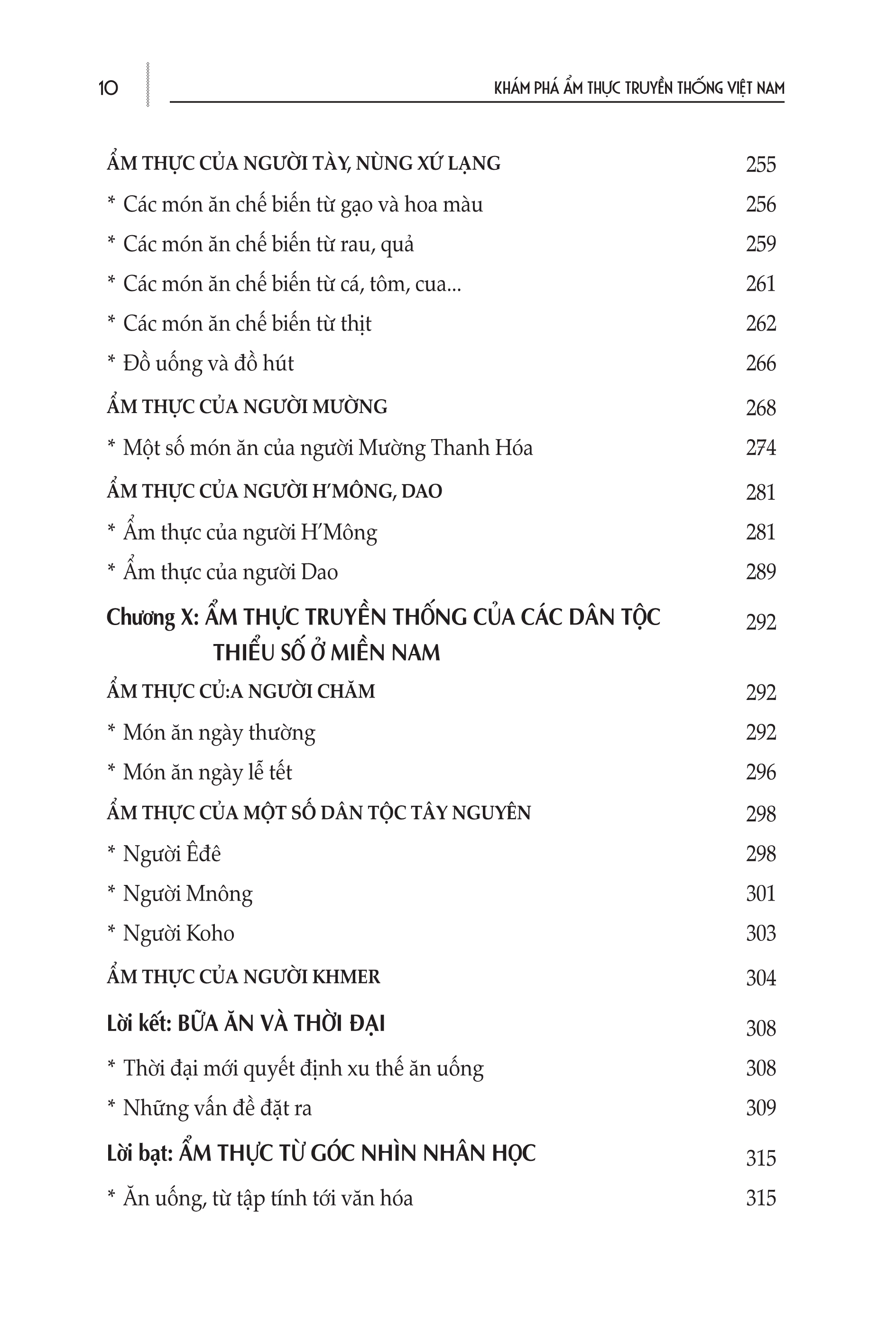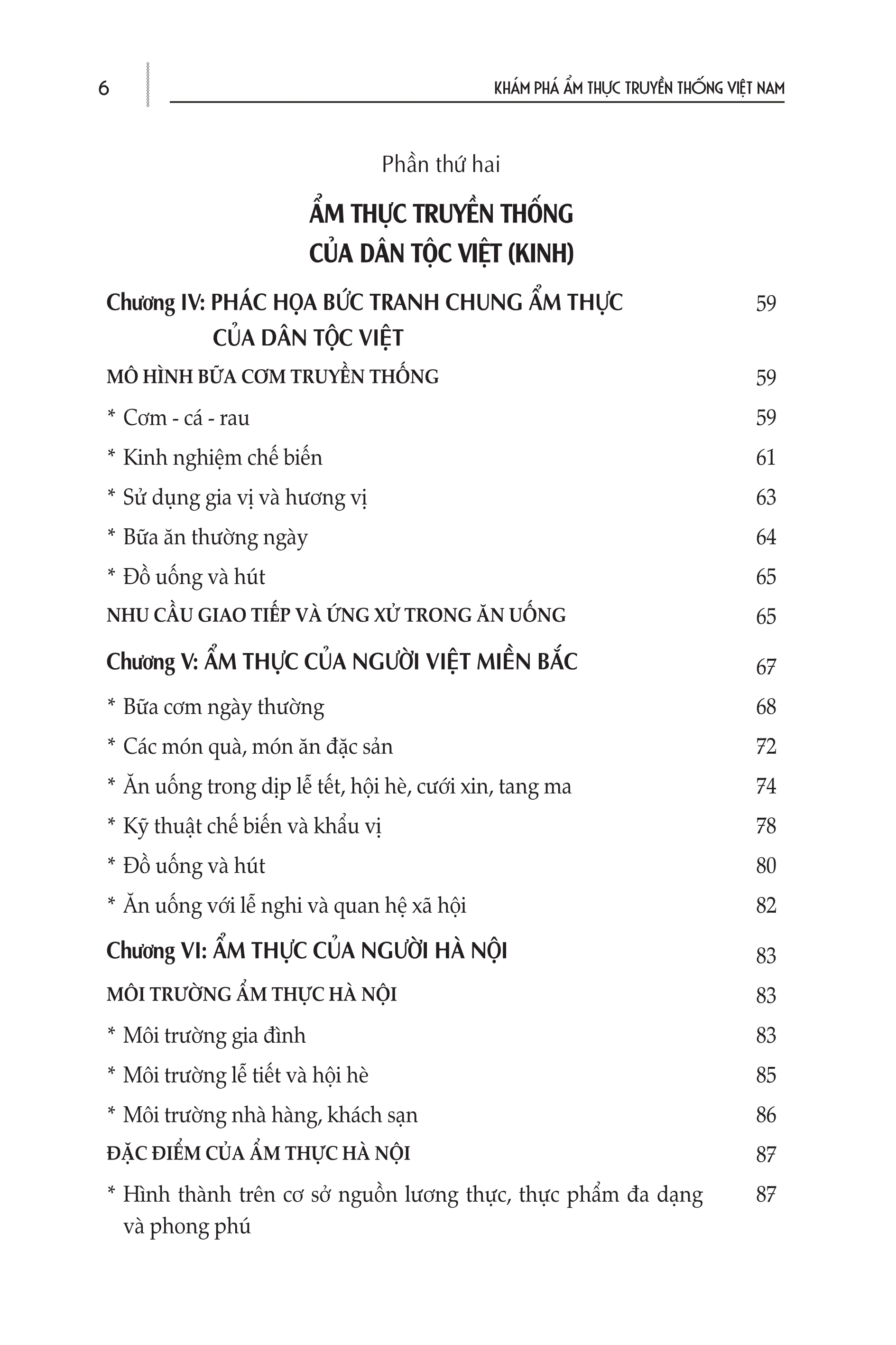 Không chỉ thế cuốn sách còn giúp bạn tìm hiểu về văn hóa ẩm thực của từng vùng miền trên đất nước Việt Nam, từ nông thôn đến thành thị, từ miền ngược đến miền xuôi, cả miền núi lẫn đồng bằng. Dù ở đâu thì các món ăn cũng được hình thành trên cơ sở điều kiện tự nhiên của từng vùng miền và tạo thành những nét văn hóa ẩm thực riêng.