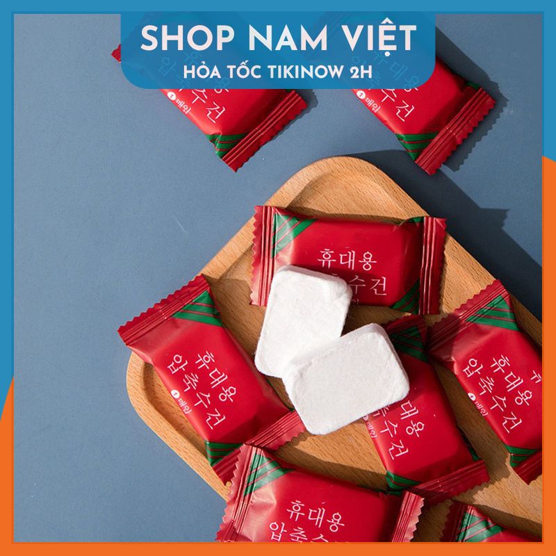 Khăn giấy nén Hàn Quốc gói 20 viên khăn nén bỏ túi du lịch tiện lợi ,khăn ướt dạng viên nén