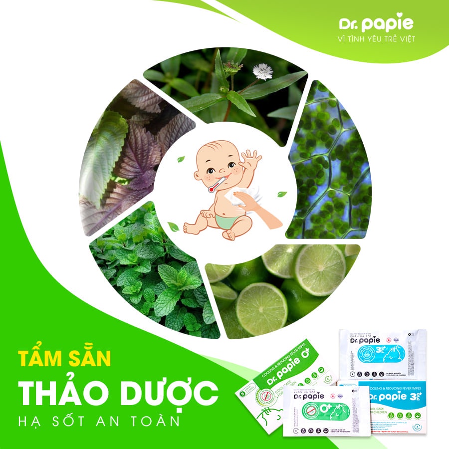 Khăn Lau Hạ Sốt 0+ 3+ Dr Papie Cho Bé Hạ Nhiệt Giảm Sốt Ngăn Ngừa Co Giật - Dr. Papie