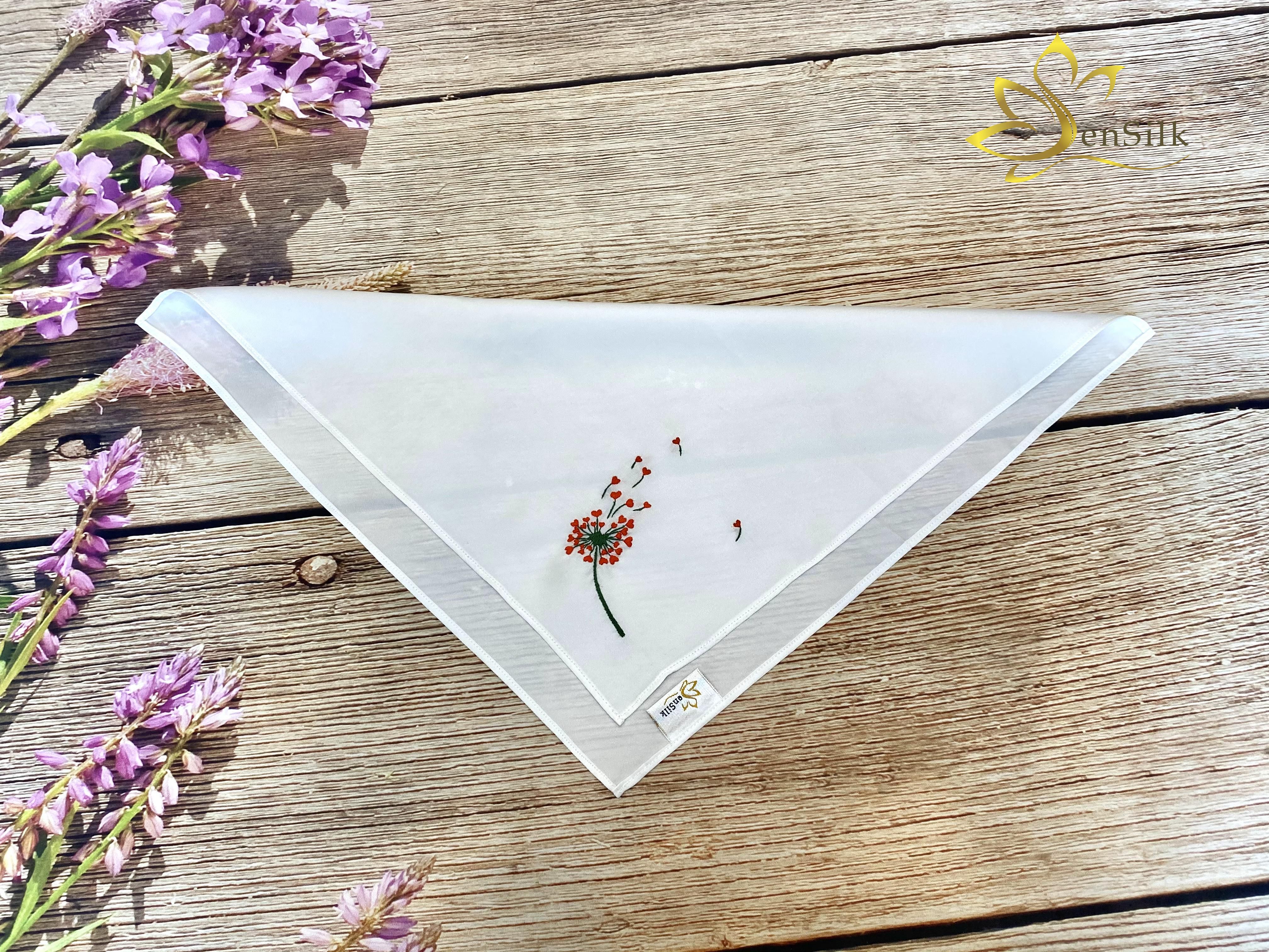 ✨Khăn Lụa Thêu Tay Thêu Hoa Bồ Công Anh SenSilk - Quà Kỷ Yếu Siêu Cute, Embroidery Silk made in Vietnam 35 x 35 CM