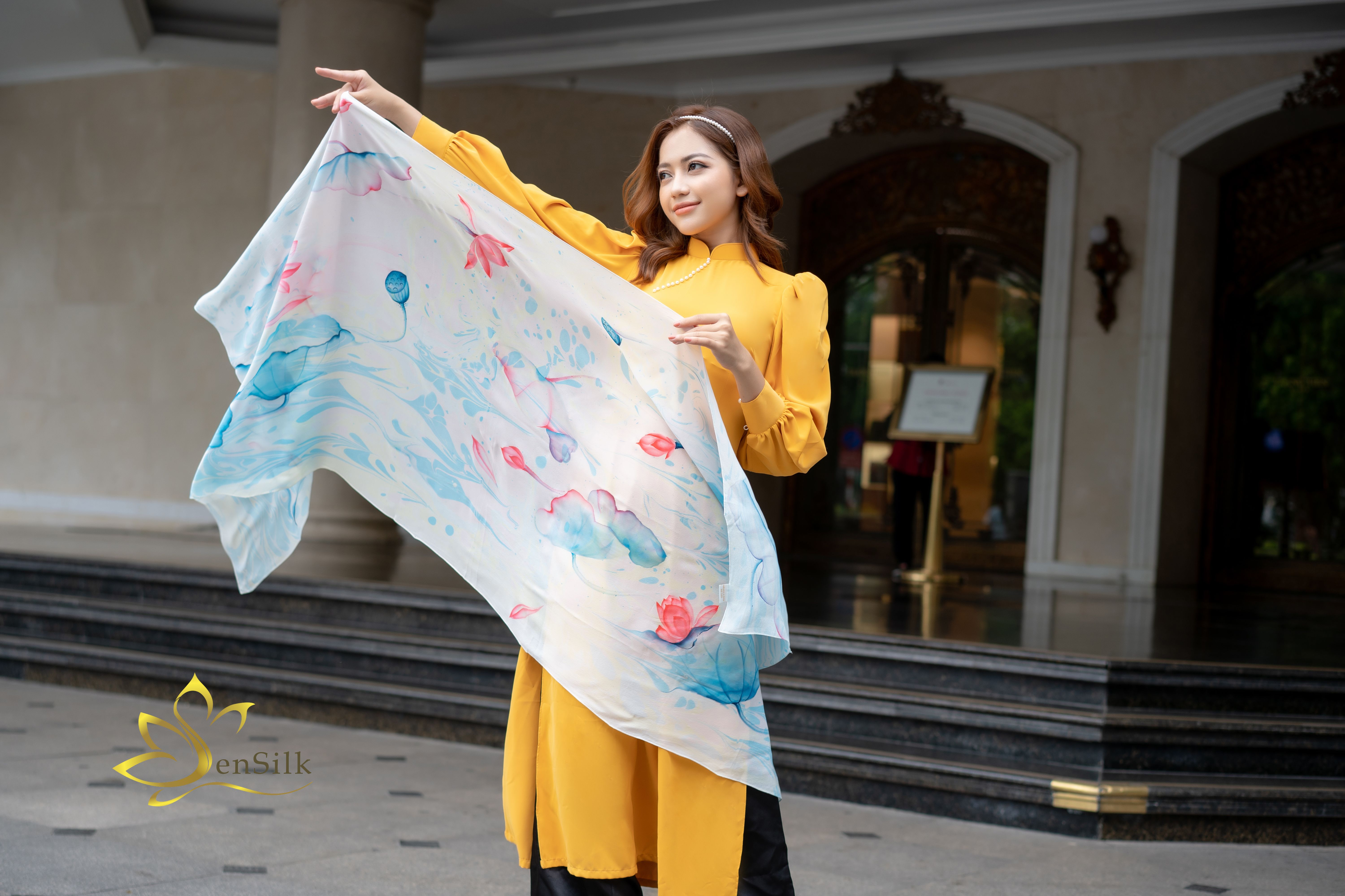 SenSilk – Lụa Tơ Tằm Thuần Việt kết hợp hài hoà giữa Lụa tơ tằm Bảo Lộc cao cấp với công nghệ in kỹ thuật số hiện đại tạo nên những chiếc khăn lụa in kỹ
