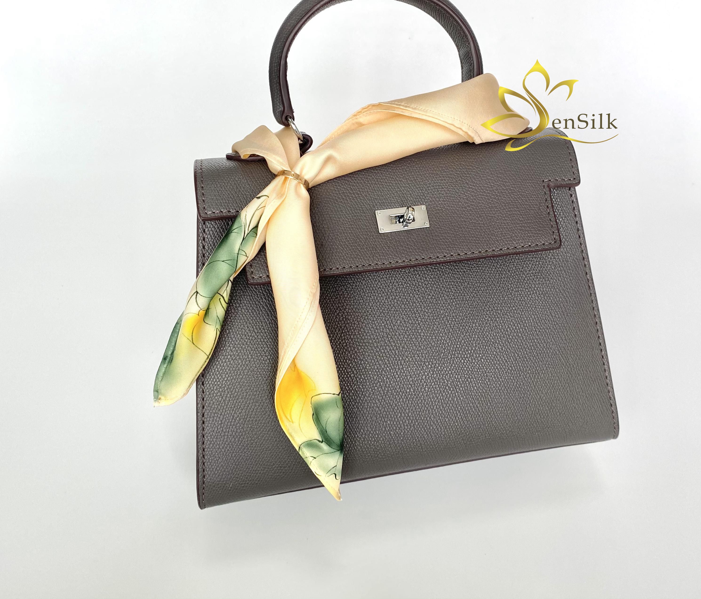 Chiếc khăn lụa vuông thần thành tuy nhỏ nhắn nhưng lại có vô vàn lợi ích nhờ tài năng biến hóa của chị em: lúc là chiếc nơ buộc tóc-túi, khi thì thắt cổ tay sang chảnh, hay đơn giản làm một chiếc thắt lưng lụa mềm mại