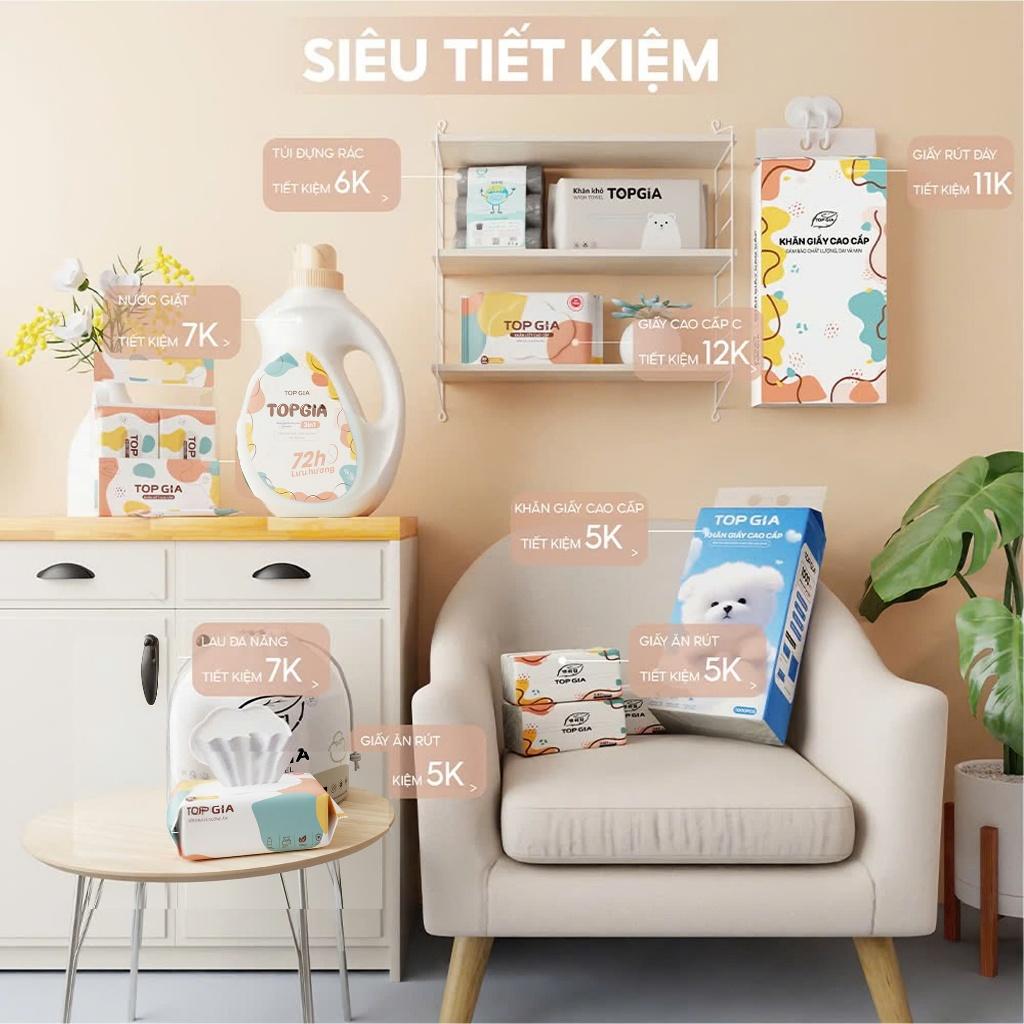 Khăn lau mặt dùng 1 lần Top Gia, khăn lau đa năng không mùi an toàn cho da và siêu tiết kiệm 1