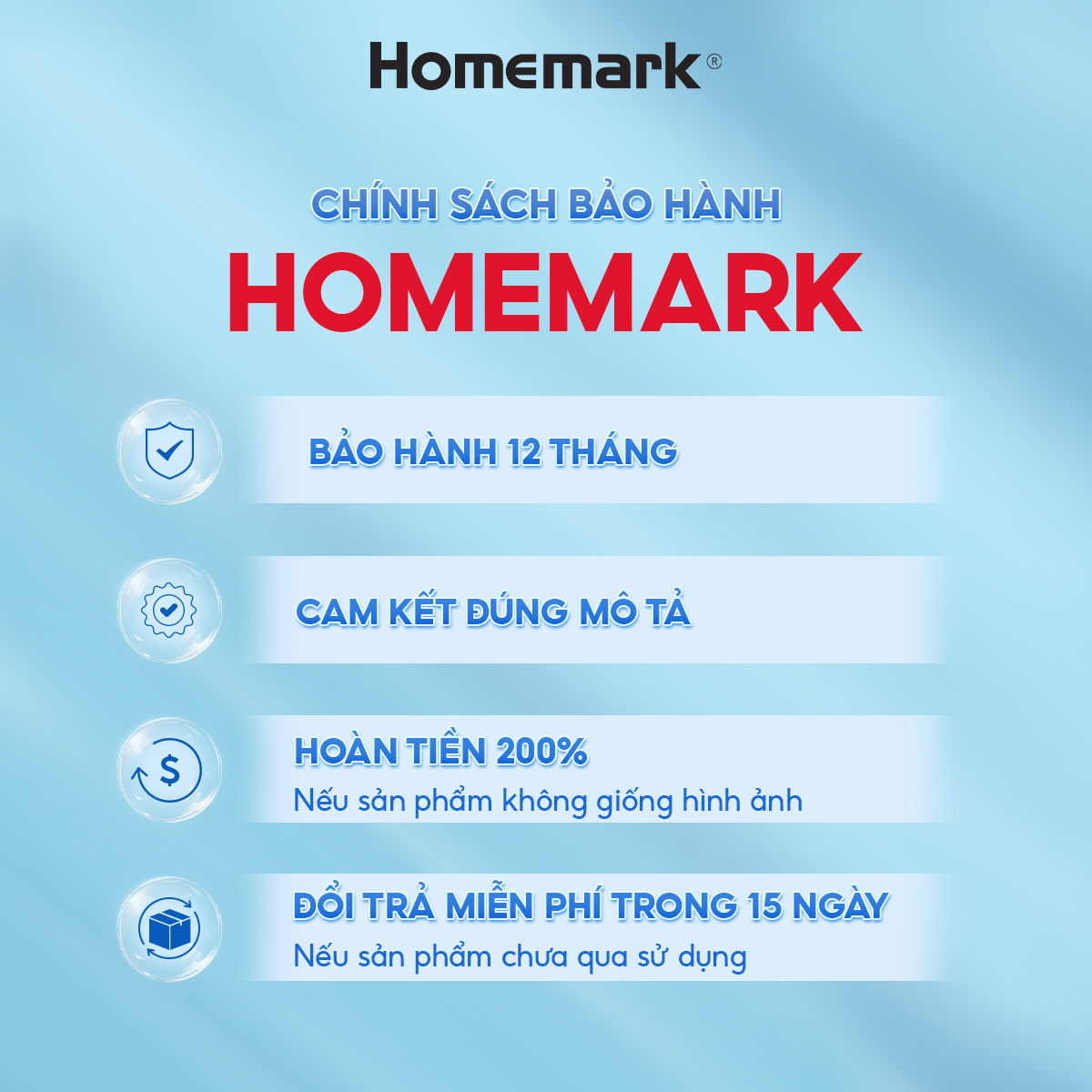 - Miễn phí đổi trả trong vòng 15 ngày với sản phẩm chưa qua sử dụng.