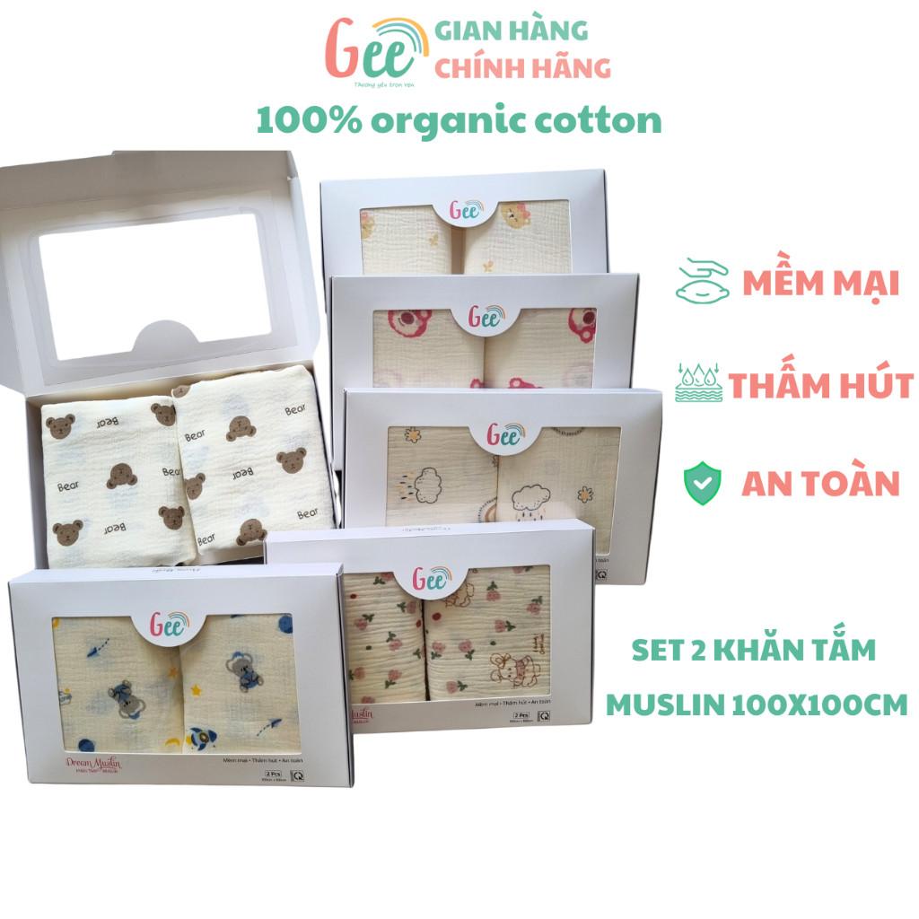 ✨KHĂN TẮM XÔ MUSLIN GEE 2 lớp mềm mại, thấm hút, an toàn, 100x100cm, 100% organic cotton, thân thiện với da bé