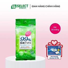 Khăn ướt khử trùng S Select Nhật Bản giúp làm sạch da 99%, đồng thời bổ sung độ ẩm phù hợp dưỡng mềm mịn da. Lưu ý: Sản phẩm không sử dụng sản phẩm cho