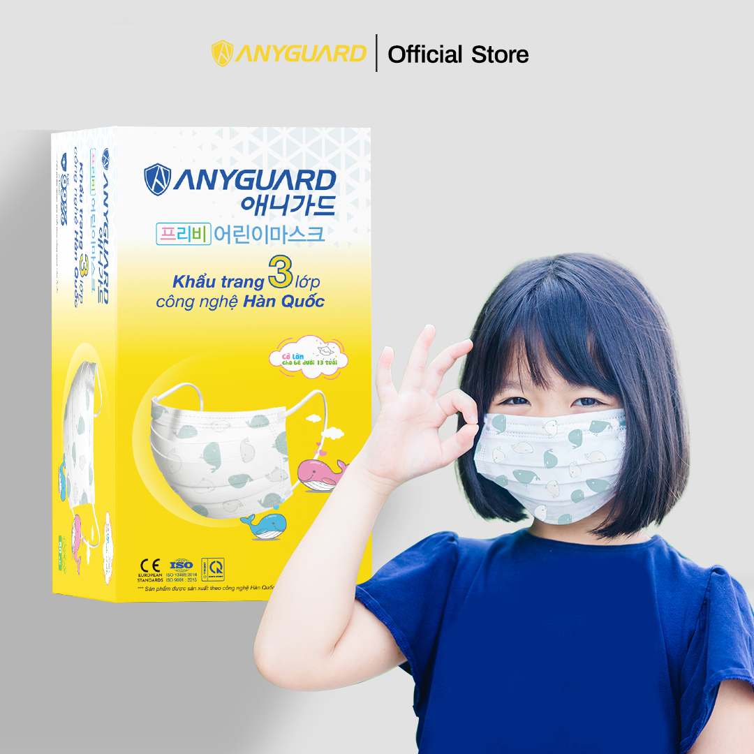 ✨Khẩu Trang Trẻ Em Anyguard Hàn Quốc 3 Lớp Chính Hãng (Cỡ Lớn Cho Bé Dưới 13Tuổi - Hộp 50 Chiếc)-베이비 마스크 - Face Mask For Kids Under 13 yearsold-ISO 9001:2015, ISO 13485:2016, QCVN 01:2017/BTC