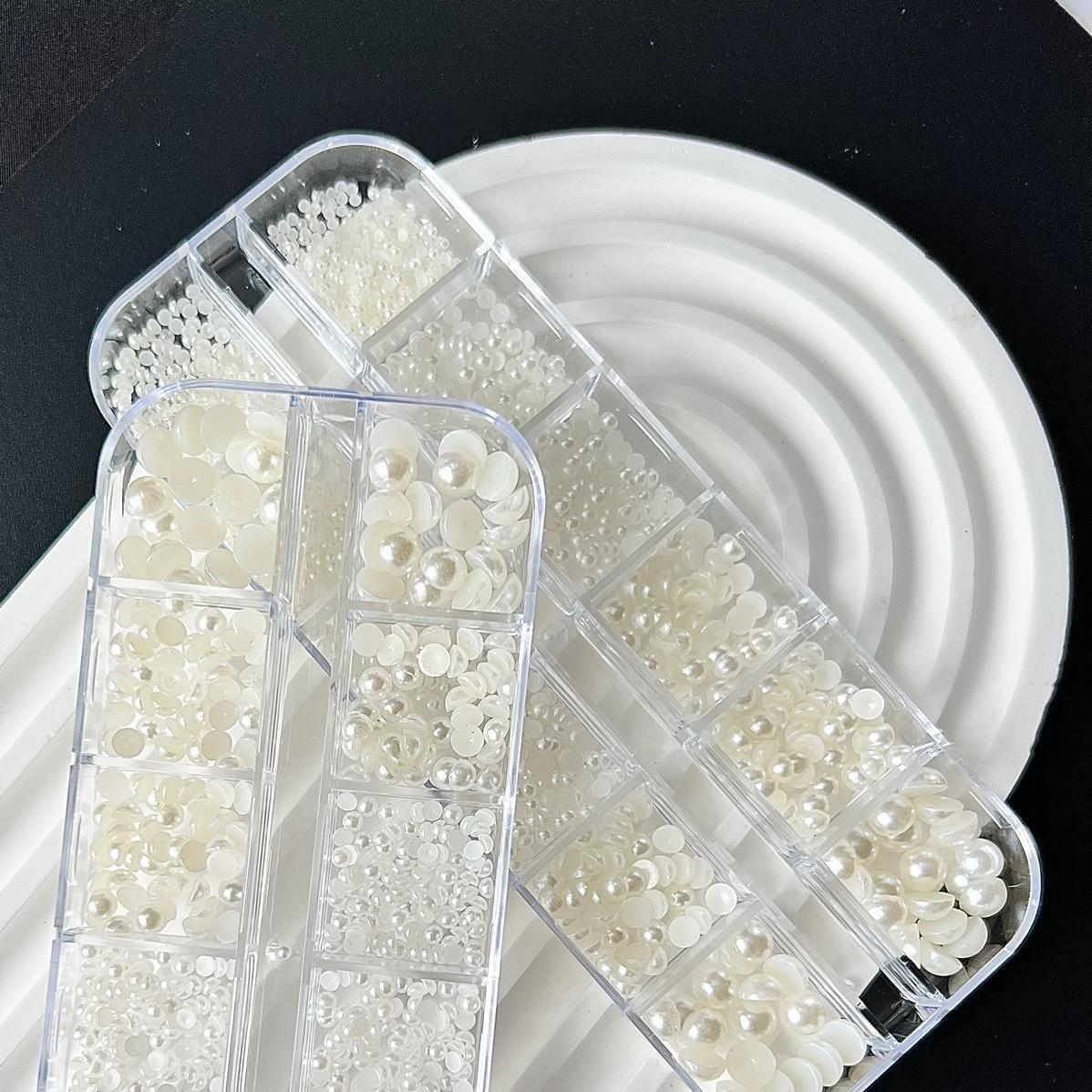 ✨Khay Ngọc Tròn Hạt Trai Nửa Mix Trắng Ngà Làm Nail, Khay Nhựa 12 Ô Chia Nhiều Size Trang Trí Móng Tay Chân Làm Móng Chuyên Nghiệp Nữ Women