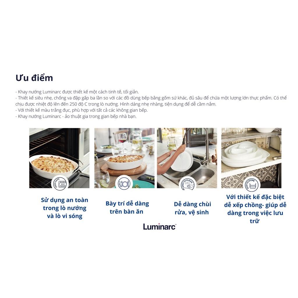 Khay nướng Luminarc được thiết kế một cách tinh tế, tối giản, siêu nhẹ, chống va đập gấp ba lần so với các đồ dùng bếp bằng gốm sứ khác, đủ sâu để chứa một lượng lớn thực phẩm. Hình dáng nhẹ nhàng, tiện dụng để dễ cầm nắm. Màu trắng sữa, phù hợp với tất cả các không gian bếp mà còn tôn nên sự sang trọng.