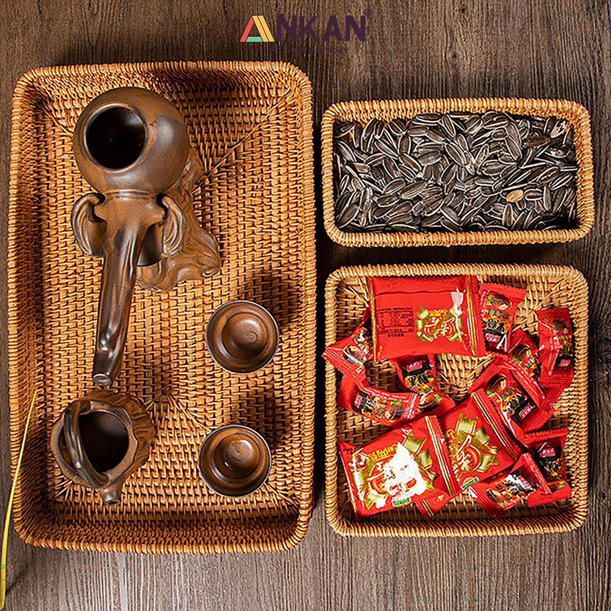 Khay mây tre ANKAN được làm từ sợi mây guột tự nhiên, đan tay tỉ mỉ, chắc chắn và tinh tế.