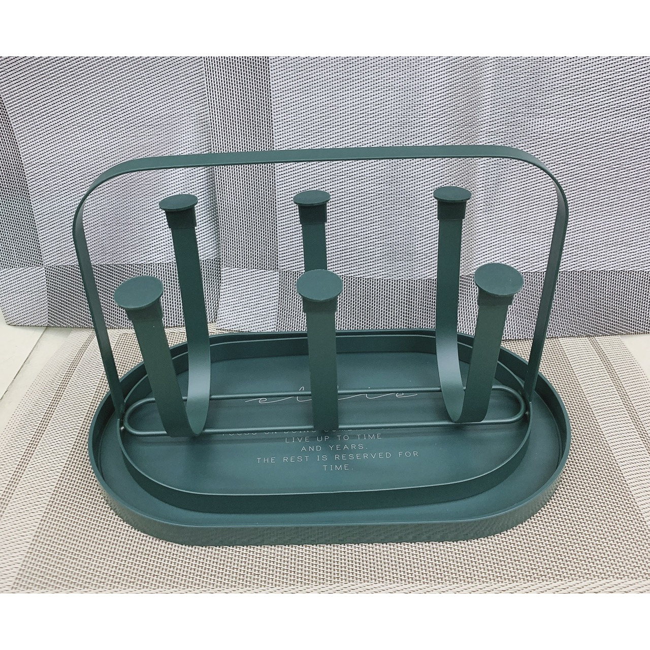 ✨KHAY ÚP LY CỐC KIM LOẠI MÀU XANH CỔ VỊT CÓ ĐĨA HỨNG NƯỚC - ANTH427