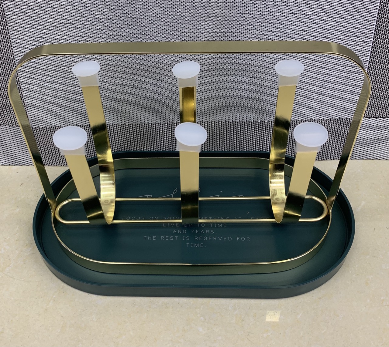 Giá úp ly, kệ úp cốc, chất liệu hợp kim mạ vàng sang trọng, Kèm khay hứng nước