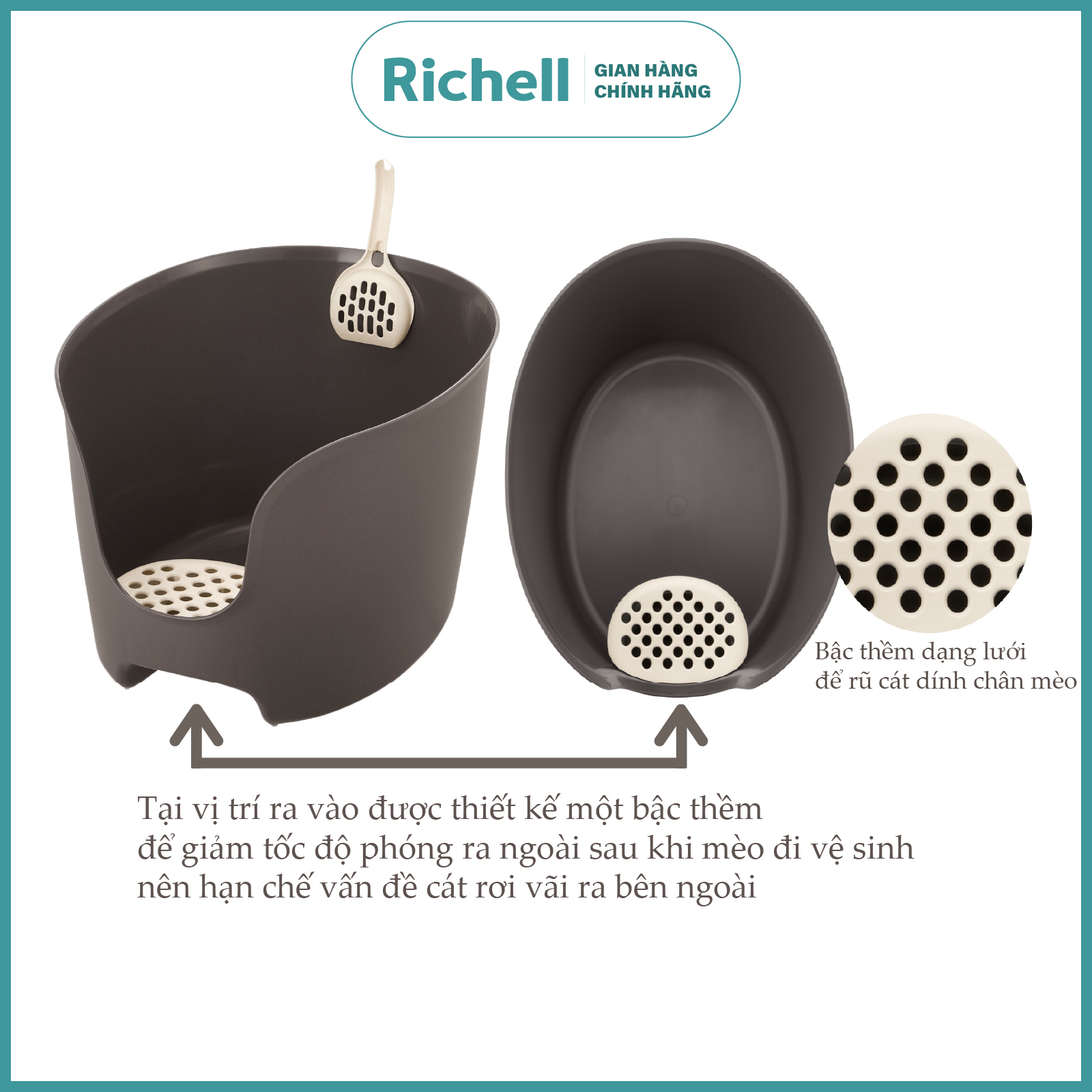 Khay vệ sinh Thành cao Richell Chống văng cát cho Mèo kèm Xẻng Khay vệ sinh thành cao chống văng cát cho mèo kèm xẻng là dòng sản phẩm với nhiều đặc trưng nổi bật như:1) Thiết kế, màu sắc trang...