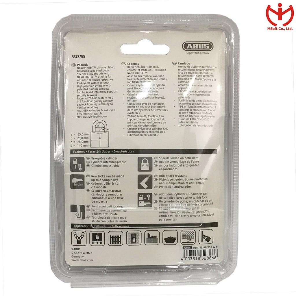 ✨Khóa thép chống cắt ABUS 83CS/55 thân thép rộng 55mm có vai chống cắt - MSOFT