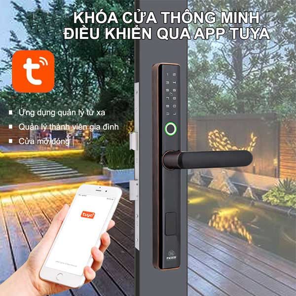 Khóa vân tay cửa nhôm PASINI ứng dụng app tuya mở cửa linh động cho người dùng