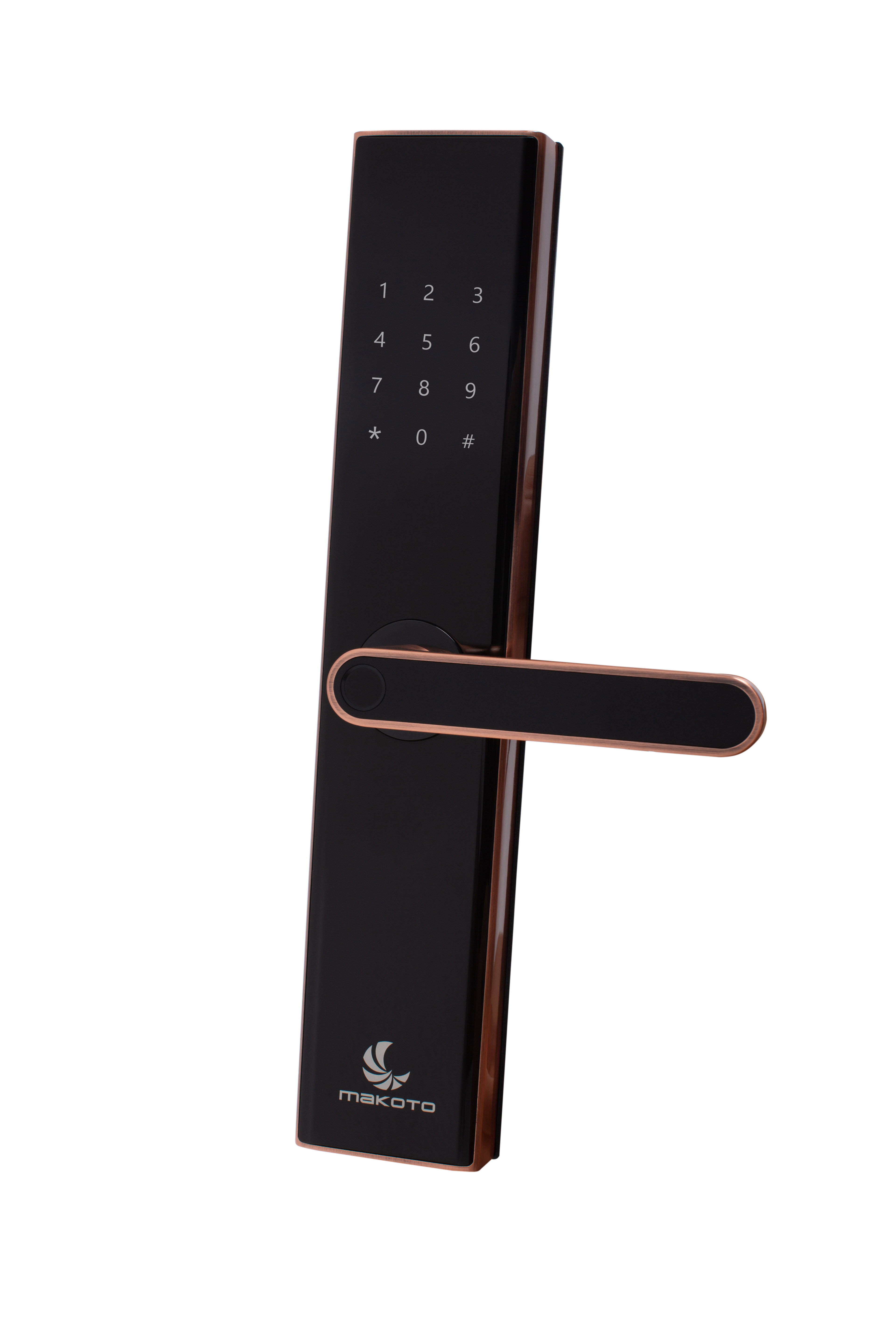 Mặt khóa bằng kính cường lực, vỏ khóa là hợp kim nhôm, tay khóa là hợp kim kẽm được sơn (mạ đồng) chất lượng cao.
