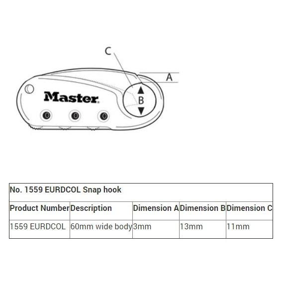 Mua tại TiktokKHÓA SỐ DÂY CÁP MASTER LOCK 1559 EURDCOL Mã sản phẩm: Master Lock 1559DCOL (hoặc 1559EURDCOL) Thông tin sản phẩm: Móc khóa sử dụng để móc chìa khóa, khóa túi xách, túi đựng dụng cụ thể thao, Đóng mở bằng cách quay số. Có 3 vòng số gồm các số từ 0-9. Dây cáp tự động cuốn. Có 4 màu sử dụng: Xanh dương, xanh lá cây, đỏ, bạc. Kích thước: Thân khóa rộng 60mm Đường kính móc khóa 3mm Lỗ móc khóa rộng 13mm x dài 11mm Thương hiệu và bảo hành: Bảo hành: 5 năm lỗi kỹ thuật. Thương hiệu: Master Lock của Mỹ.
